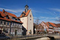 In der historischen Altstadt befinden sich zahlreiche, teilweise bereits im 17. Jahrhundert errichtete, Fachwerkhäuser. Viele von ihnen weisen Hausinschriften auf, die neben dem Namen des ersten Eigentümers und des Erbauungsjahres oftmals auch einen Spruch enthalten. Das älteste Gebäude in der Altstadt ist die nach dem Brand von 1605 wieder aufgebaute und von den späteren Feuern verschont gebliebene Steinbergsche Mühle in der Mühlenstraße. Das im Jahre 1888 als Logierhaus errichtete Gildehaus und das 1898/99 erbaute Hotel Kronprinz gehören zu den bekanntesten Gebäuden der Stadt.