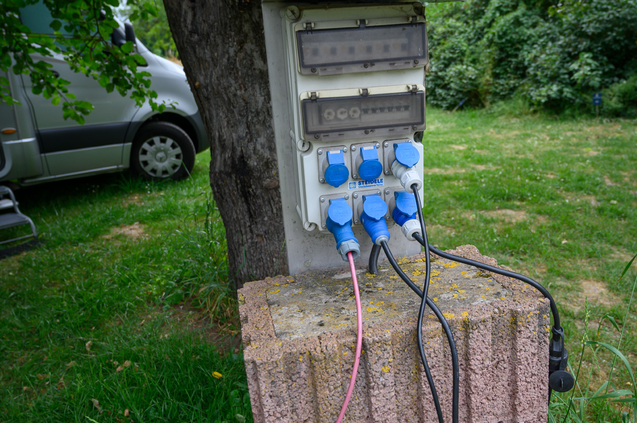 - Es gibt 40 Stromanschlüsse in CEE, mit 16A abgesichert.