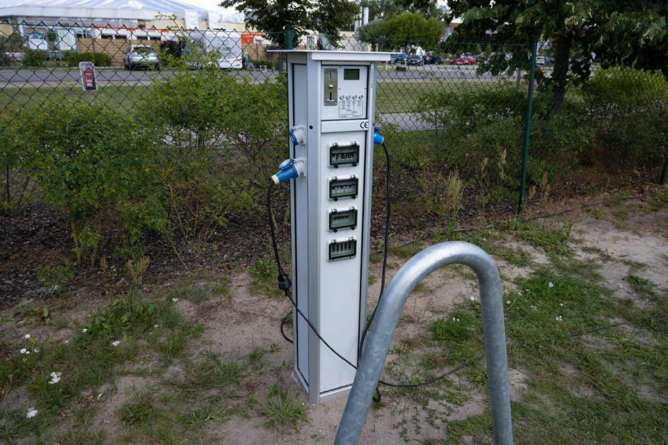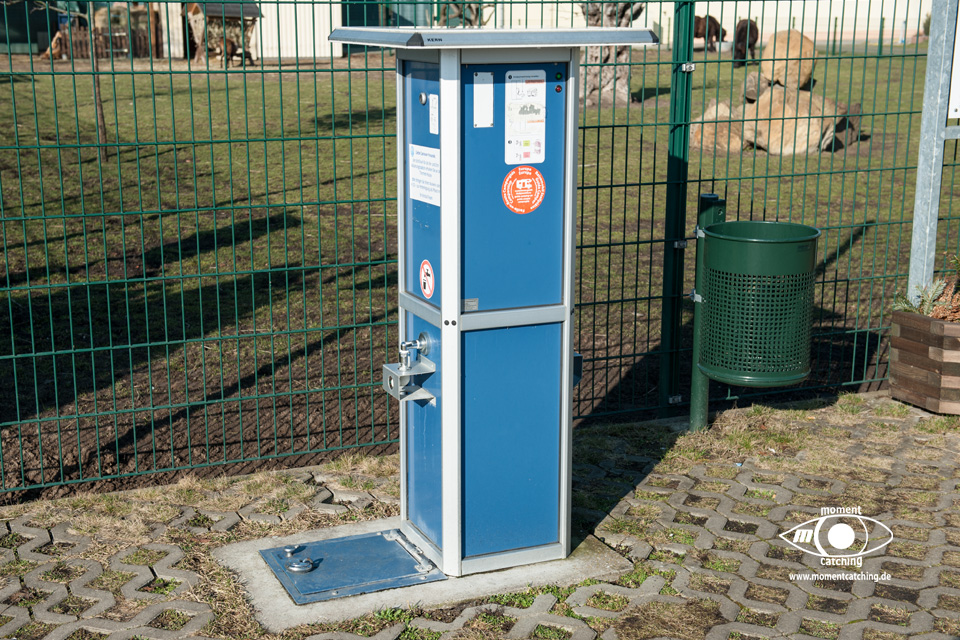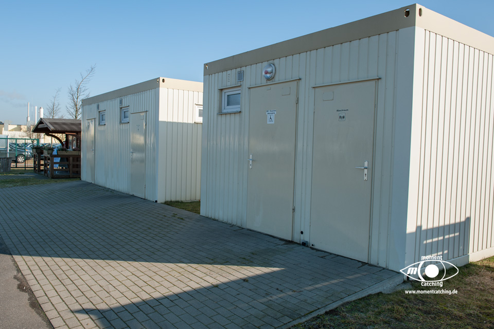 - Auf diesem Gelände befinden sich zwei Sanitärcontainer und die Müllecke. Hier gibt es auch eine V+E-Station, die allerdings im Winter kein Wasser hat. Eine weitere V+E-Station gibt es auf dem Pkw-Parkplatz. Hier gibt es auch im Winter Wasser. Sie ist allerdings verschlossen.