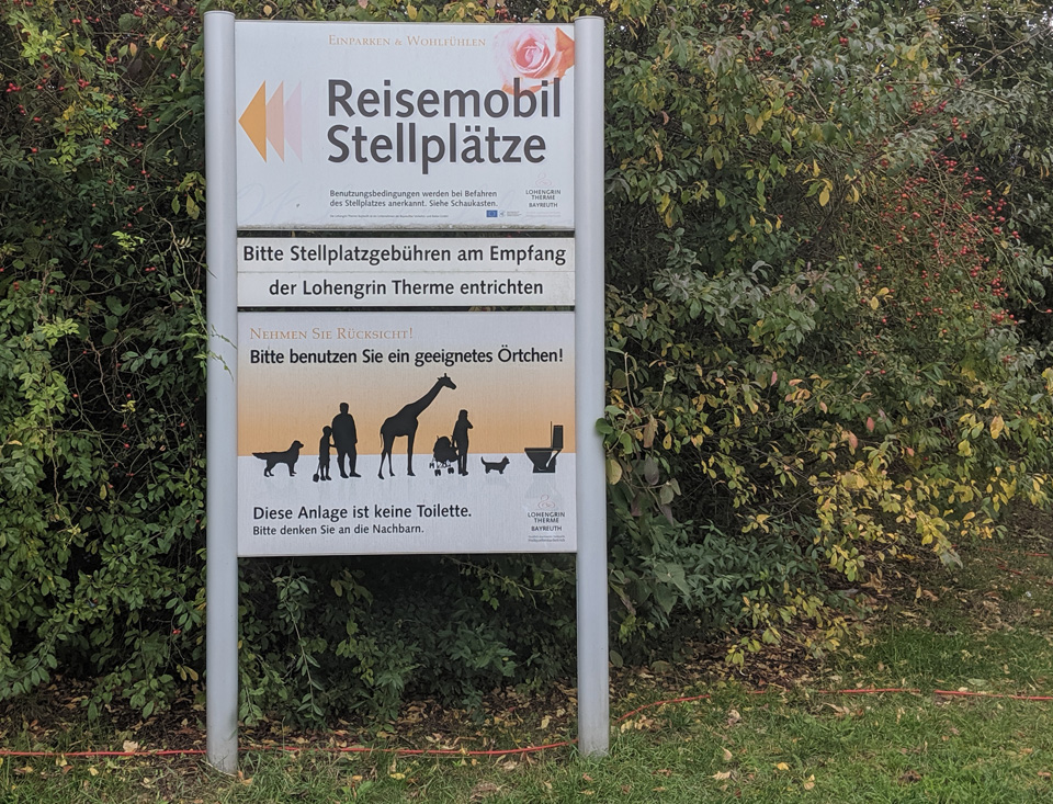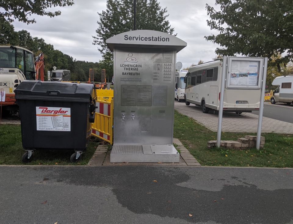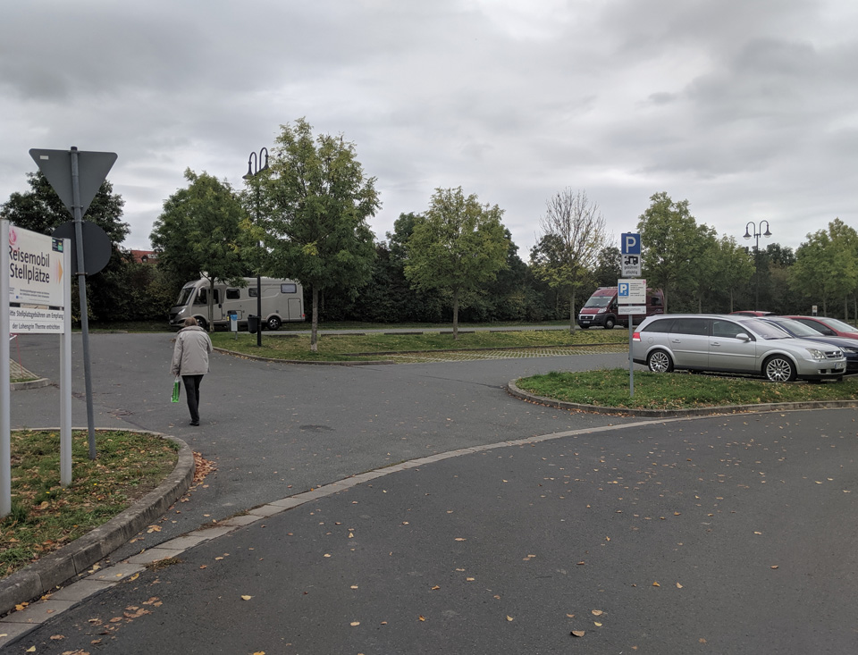 Anz. Stellpl.: 18 Boden: Pflaster 🔛 12 Meter + 🔌 ja; 🚰 ja Kleinmengen: nein 🚽 ja Citty Clean 📥 ja Citty Clean 🚿 nein; 🚻 nein 📶 nein Max. Aufenthaltsdauer: Ohne Begrenzung 📆 ganzjährig Gasflaschentausch: nein Brötchenbestellung: ja in der Therme Waschm./Trockner: nein Müllentsorgung: ja Mülltrennung: nein |