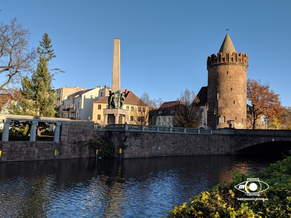 Wir sind vom Stellplatz aus in die Neustadt gelaufen in die St. Annengalerie, ein großes Einkaufscentrum mit einem Mediamarkt. Wir haben dabei uns auch einen ersten Eindruck von der Stadt gewonnen. Man hat entlang der Havel eine Promenade angelegt. Auch am Stadtkanal kann man entlang laufen. Sehr gut gestaltet.