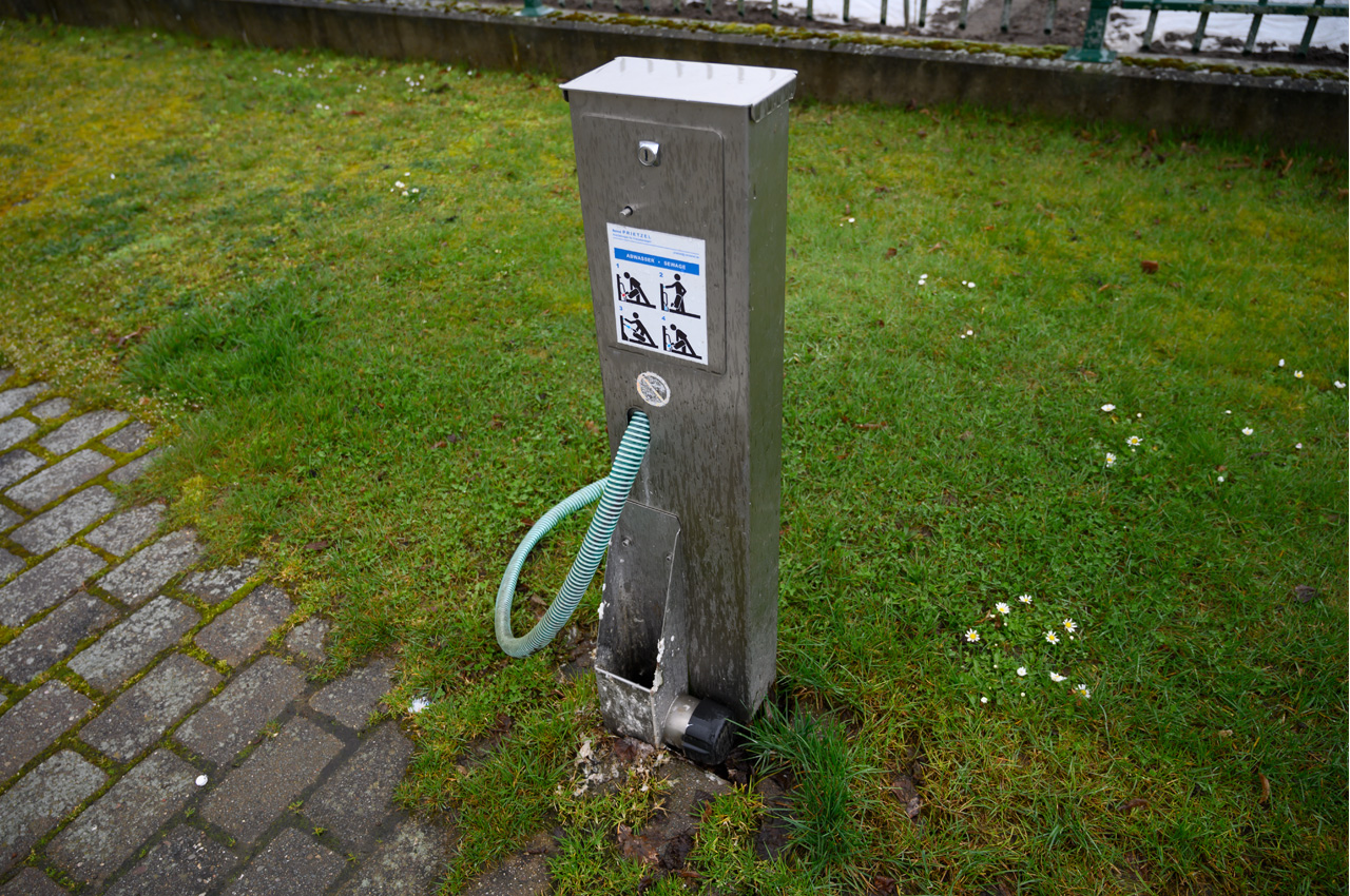 Auf dem Platz gibt es eine Änderung, er ist nicht mehr kostenlos. Er kostet jetzt 5,-€/Nacht. Die V+E ist leider im Winter abgestellt.