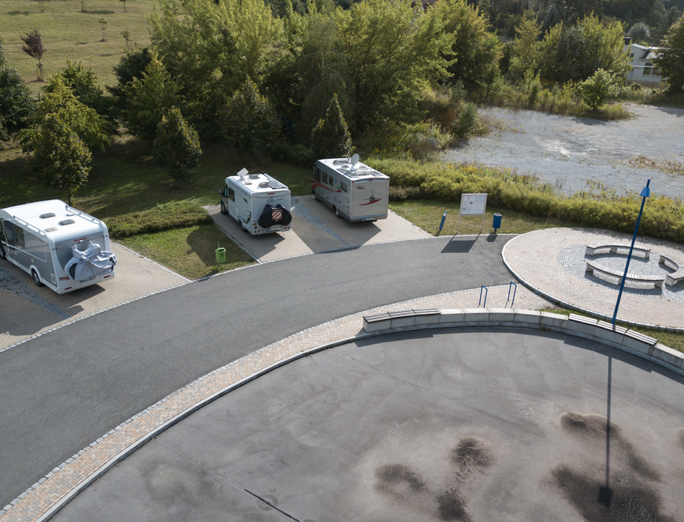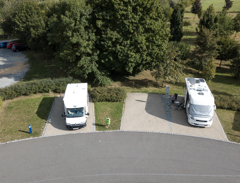 - Die Stellflächen befinden sich auf einem abgegrenzten Gelände. Sie sind durch die Pflasterung abgegrenzt und dabei ausreichend groß bemessen und es gibt jeweils dahinter eine Rasenfläche.