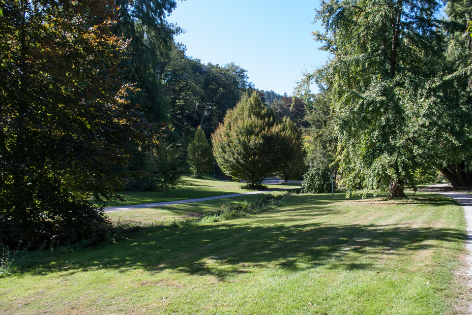 Der Park hat sehr viele exotische Bäume mit stattlichem Alter.
