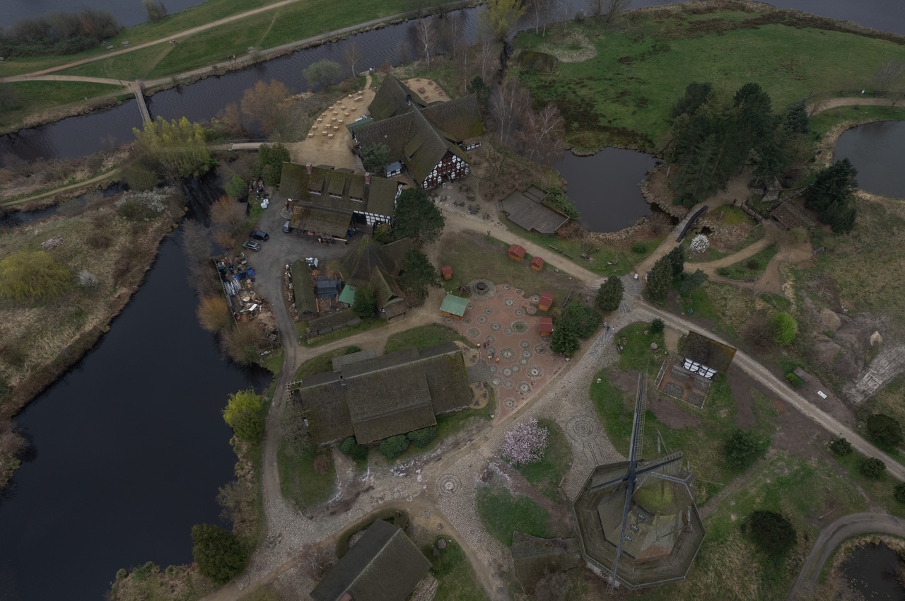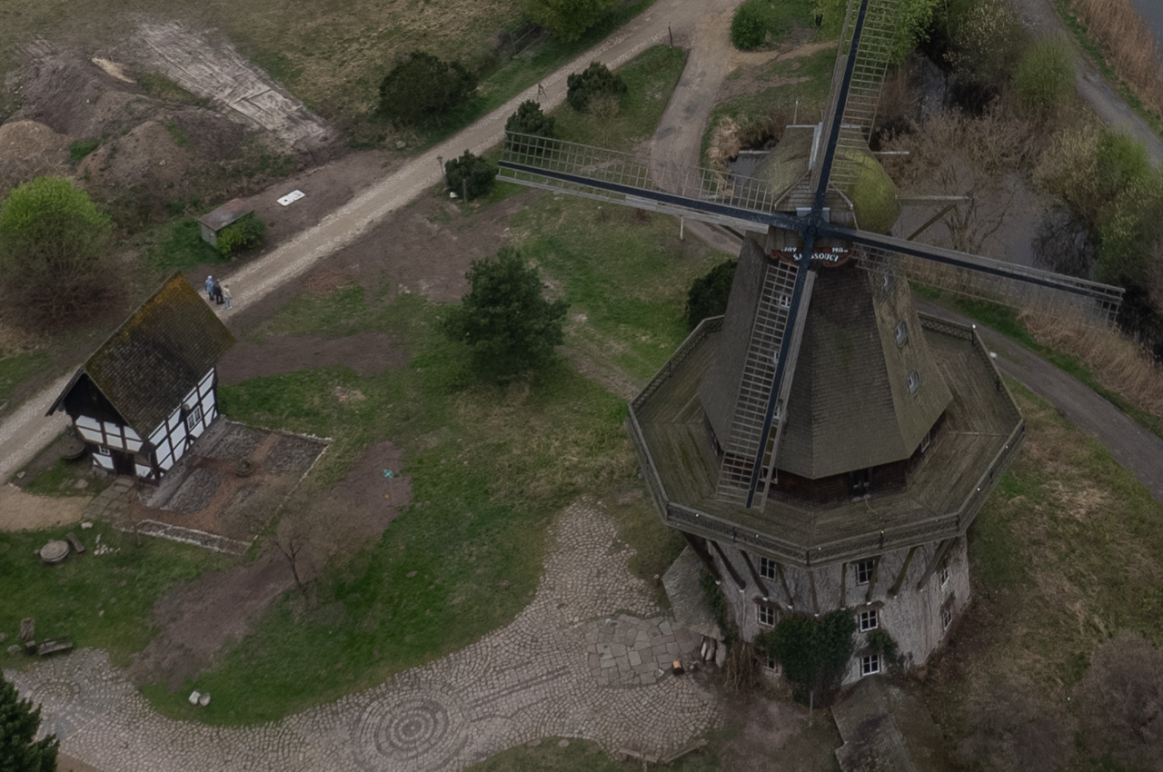 Nach dem Kaffeetrinken bin ich nochmal mit der Drohne losgezogen in Richtung Mühlenmuseum. Dort habe ich Fotos aus der Luft gemacht und einige Videosquenzen erstellt. Morgen wollen wir ja in das Museum und dort werde ich Aufnahmen vom Boden aus machen. Ich habe bei meinem Rückweg einen Schlenker auf das Mühlengelände gemacht und dabei erfahren, dass das Gelände frei zugänglich ist. Eintritt muss man nur für das Museum selbst und für die russische Kirche bezahlen. Schon kurz nachdem ich wieder im Womo war, fing es ziemlich heftig an zu regnen. Glück gehabt.