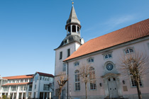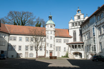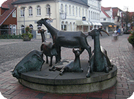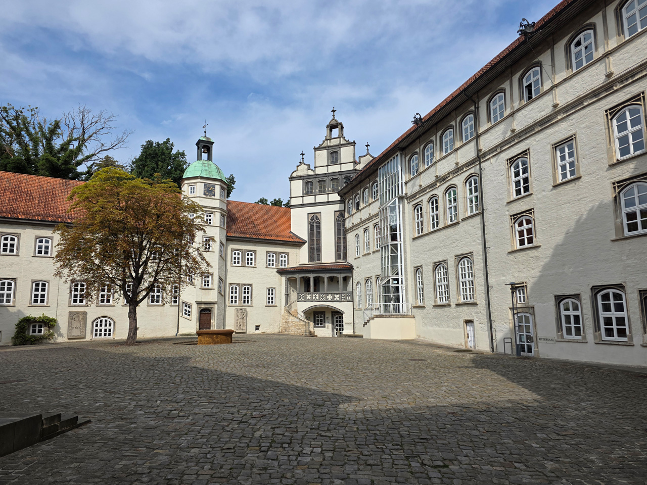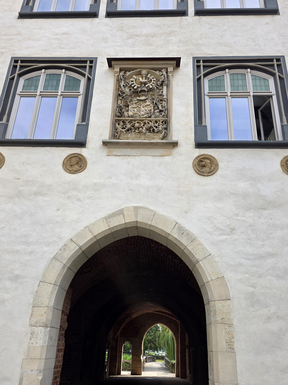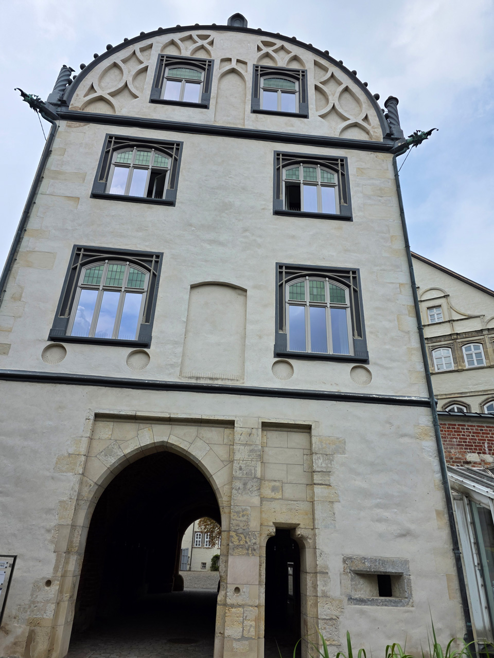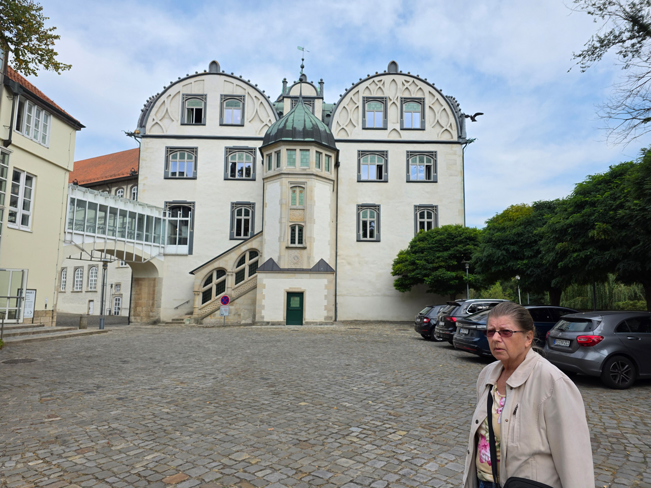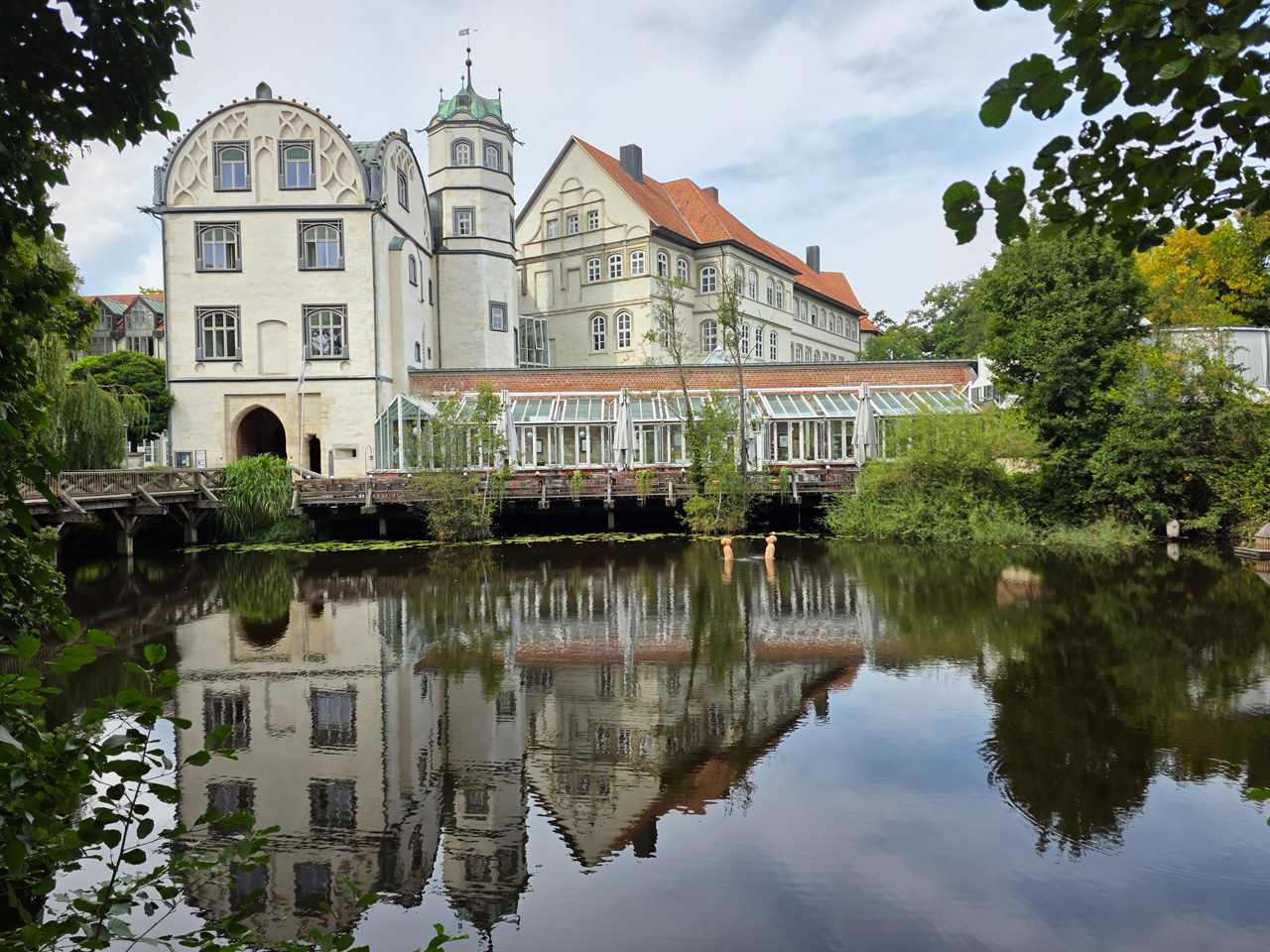 Gegen Mittag sind wir zu einem Spaziergang in die Altstadt von Gifhorn aufgebrochen. Wir sind die Fußgängerzone in Richtung Kirche gelaufen. Bei H&M hat sich Susanne noch eine weitere kurze Hose gekauft. Als Susanne an der Kasse bezahlt hat, staunte sie nicht schlecht über den Preis. Statt der ausgepreisten 25,99€ wollte der gute Mann an der Kasse nur 3,99€ von ihr. Wie macht man das, eine komplette Hose für 3,99€ zu verkaufen. Wir hatten nicht gesehen, dass auf dem Preisschild zwei kleine Aufkleber waren, mit einem reduzierten Preis. Die St.-Nicolai-Kirche war leider verschlossen. Ihr Glockenturm ist komplett eingerüstet und es wird aktiv an ihm gearbeitet. Schräg gegenüber steht das alte Rathaus. Ein Gebäude, was uns immer wieder beeindruckt. An ihm entdeckt man geballte Handwerkskunst. Wir sind weiter gelaufen zum Schloss. Leider hat das Museum nur bis 13:00 Uhr geöffnet und es war schon 13:20 Uhr. Also haben wir uns nur im Innenhof etwas umsehen können. Zu unserem großen Staunen sind die beiden Figuren wieder im Wasser und bespeien sich mit Wasser. Bei unserem Besuch im Frühjahr haben wir sie nämlich vermisst. Vom Schloss aus sind wir nochmal ins EDEKA gegangen und haben unsere Lebensmittelvorräte aufgefrischt. Danach ging es wieder zurück zum Womo.
