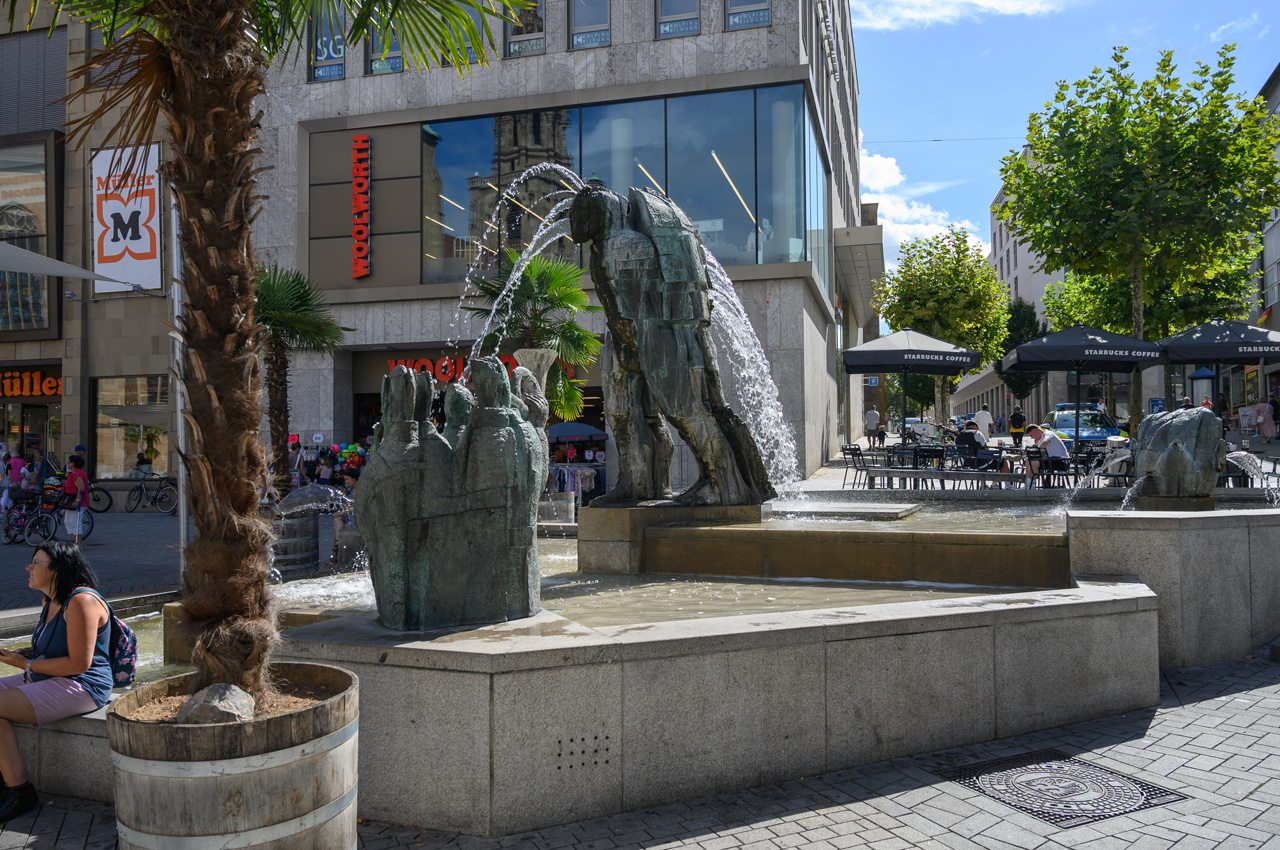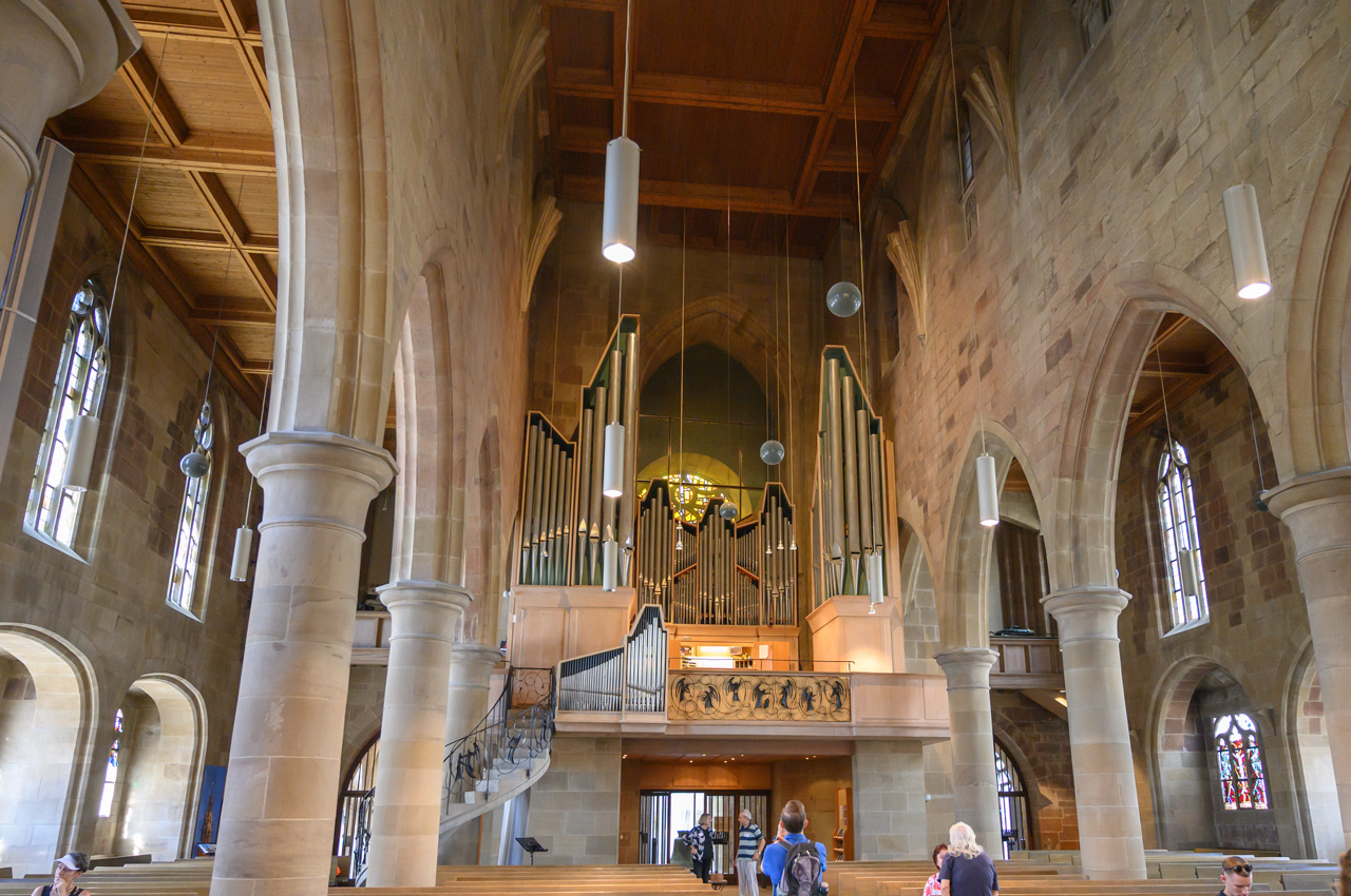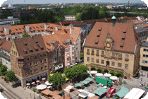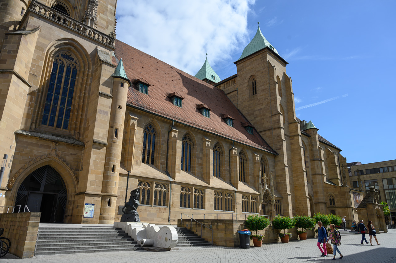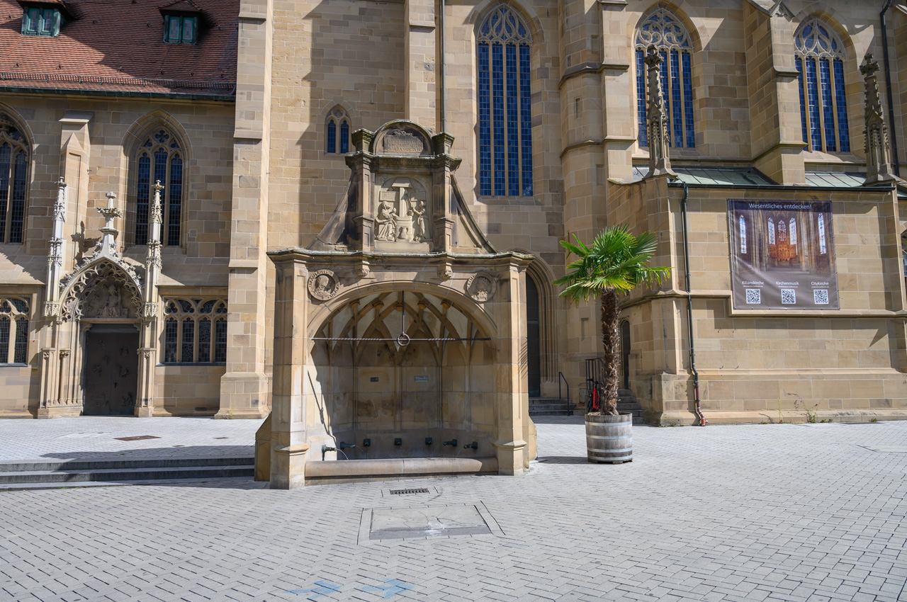 Unser nächstes Ziel war die Touristeninfo am Rathaus. Das Rathaus ist ein sehr schönes Gebäude mit einer speziellen Mond Uhr über der Normalzeituhr. In der Touristeninfo haben wir einen Stadtplan bekommen. Nach einem kurzen Spaziergang durch das Umfeld vom Rathaus, sind wir zurück zur Kilianskirche, um dem Orgelkonzert beizuwohnen. Nach dem ersten Stück haben wir aber die Kirche wieder verlassen. Orgelmusik ist nur sehr bedingt etwas für unsere Ohren. Jetzt waren wir auf der Suche nach einem italienischen Eiskaffee. Diese Suche blieb aber leider erfolglos. Wir haben weder ein italienisches noch ein anderes Eiscafé gefunden. Nachdem wir uns im REWE ein frisches Baguette besorgt haben, haben wir dann auch wieder den Rückweg angetreten. Wir sind wieder den gleichen Weg am Neckar entlang gelaufen.