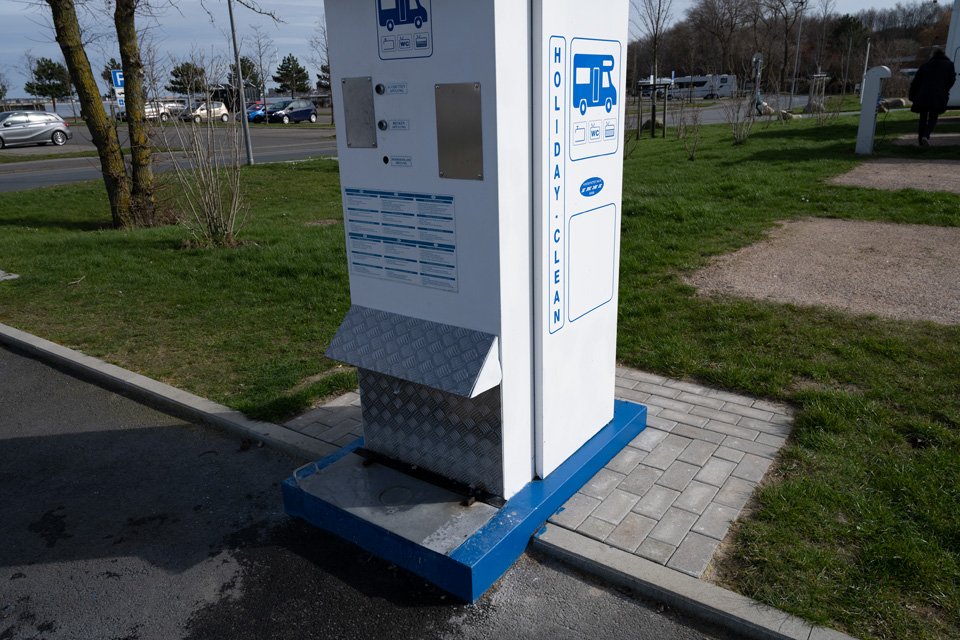 - Es gibt zwei V+E Stationen, die beide vorbildlich ausgestattet sind. Der Bodeneinlass für Grauwasser ist jeweils gut anfahrbar.