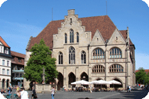Der Marktplatz wurde nach dem Alten Markt und dem Andreasplatz erst relativ spät zum Handels- und Lebenszentrum der Stadt. Dort stellten sich in der Frühen Neuzeit Bürgerschaft und Gilden in repräsentativen Bauten dar. Als einzige von diesen Gebäuden überstanden das Rathaus und das Tempelhaus den verheerenden Bombenhagel im März 1945, wenn auch erheblich beschädigt. Weitgehend unbeschädigt blieb nur der als Rolandbrunnen bekannte Marktbrunnen.