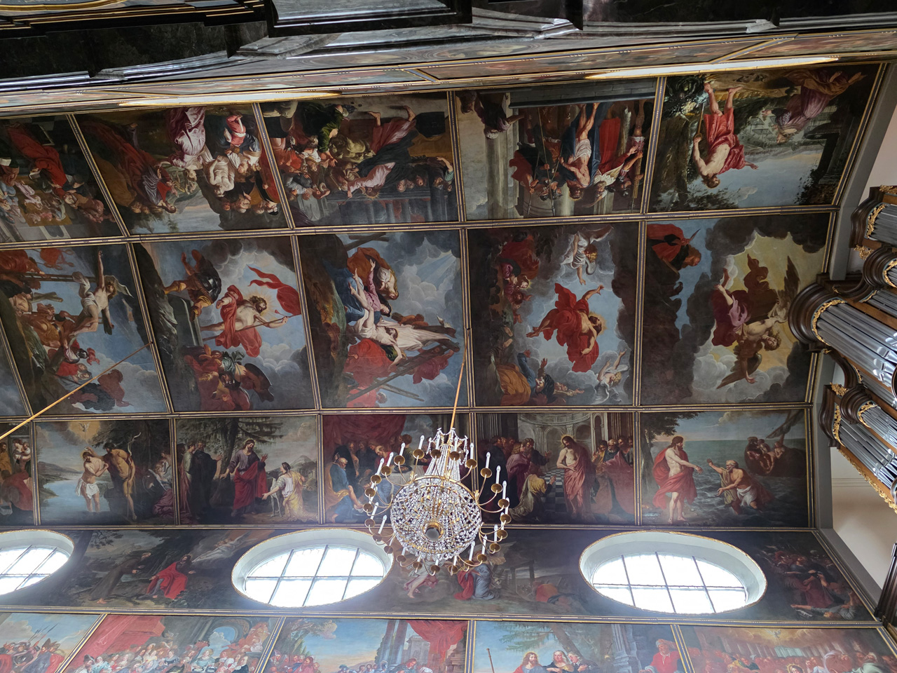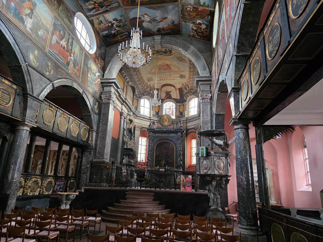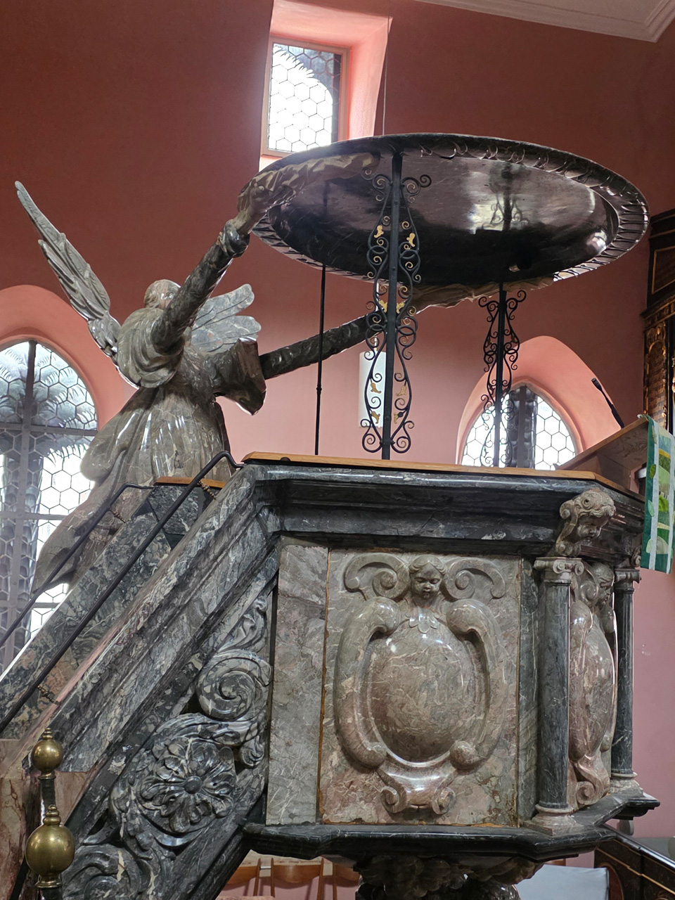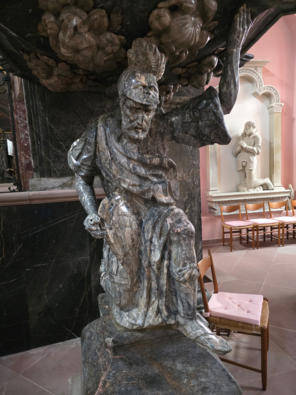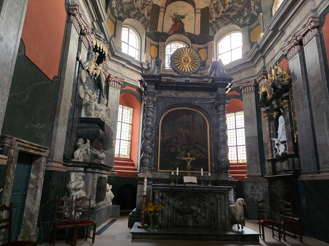 Nach einem Kaffee haben wir uns auf den Weg gemacht in Richtung Altstadt. Wir sind über die Weiherwiese in Richtung Marktplatz gelaufen. Schon in der Weiherwiese haben uns die tollen Fachwerkhäuser tief beeindruckt. Am Marktplatz angekommen fällt der Blick auf den historischen Marktbrunnen. Selbst wenn man sich einmal um die eigene Achse dreht, man sieht ringsherum Fachwerkhäuser, eins schöner als das andere. Wir sind in die Himmelsgasse eingebogen und sind in Richtung Rathaus gelaufen. Hier, auf dem König-Adolf-Platz, steht der Löwenbrunnen, ein weiteres Schmuckstück der Stadt. Hier weiß man gar nicht, wo man zuerst hinschauen soll. Das mächtige Kanzleitor markierte früher die Grenze zwischen der südlichen Bürgerstadt und der nördlichen Residenzstadt. Das Rathausgebäude daneben strahlt in einem leuchtenden Orange. Auf der anderen Seite des Platzes steht eines der schönsten Häuser der Stadt, das Killingerhaus. Es ist sehr reich mit Schnitzkunst verziert. In diesem Gebäude befindet sich die Touristeninformation, die allerdings erst um 14:00 Uhr öffnet. Wir haben bis dahin noch etwas Zeit und gehen darum zuerst in die Rodergasse. Dort fällt sofort ein skurril anmutendes Gebäude auf, das als Schiefes Haus bezeichnete Gebäude. Auch hier kann man über die gewagte Architektur nur staunen. Über den Löherplatz ging es zurück zu der Unionskirche. Sie war offen und wir konnten sie besichtigen. Das ist eine Kirche der besonderen Art, wie man sie nicht so oft zu sehen bekommt. Hier wurde Lahnmarmor für die Arkaden an beiden Seiten des Schiffes und den Säulen verwendet. Auch der barocke Altar ist fast komplett aus Marmor. Ein ganz besonderes Highlight sind die 38 Gemälde, die die Decke und die Brüstungen der Arkadengänge zieren. Von den 38 Gemälden sind 33 von Michael Angelo Immonradt und 5 von Johann von Sandrart. Allein mit diesen Gemälden kann man sich lange Zeit aufhalten. Nach einem kurzen Blick in die kleine Gruft unter dem Chor, dort stehen die Sarkophage des Fürstenpaares, haben wir die Kirche wieder verlassen, um vorbei an weiteren Fachwerkhäusern zu der Touristeninfo zu gehen. Sie hatte nun inzwischen geöffnet und wir konnten unsere Standgebühren bezahlen und uns mit entsprechendem Infomaterial versorgen. Jetzt war es auch langsam Zeit für unseren Nachmittagskaffee. Wir sind zurück zum Womo gelaufen. Unterwegs haben wir unter dem positiven Eindruck dieses Ortes beschlossen, den eingesparten Tag hier anzuhängen und erst am Sonntag wieder abzureisen.