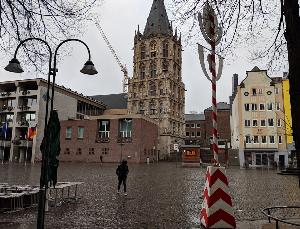 Das historische Kölner Rathaus, im Zentrum der Kölner Innenstadt gelegen, ist aufgrund seiner Bauzeugnisse als ältestes Rathaus Deutschlands anzusehen. Seine dokumentierte Baugeschichte erstreckt sich auf einen Zeitraum von über 800 Jahren. Der Rathauskomplex steht im Kernbereich der um das Jahr 50 in den Rang einer Stadt (Colonia) erhobenen römischen Siedlung. Urkunden belegen die Anfänge des historischen Bauwerkes. Die ersten aus den Jahren 1135/52 erwähnen ein domus in quam cives conveniunt, ein Haus, in dem die Bürger zusammenkommen. Ein weiteres Dokument beschreibt die Lage des Hauses. So heißt es 1149, dass das Haus, domus inter judeos sita, im Judenviertel gelegen sei. Bei diesem ersten Bauwerk, dessen Fundament teilweise auf Resten der römischen Stadtmauer ruhte, handelte es sich vermutlich um ein zweigeschossiges, in romanischem Stil errichtetes Gebäude. Der älteste auch heute noch erhaltene Bauteil des Rathauses entstand um das Jahr 1330. Ein Dokument aus diesem Jahr besagt, dass der Nachbar des Rathauses, Anselm von Osnabrück, dem anfragenden Rat gestattet, den Unterzug einer Balkenlage in seine nördlich angrenzende Hauswand zu legen. Dieser Vorgang verweist auf ein damaliges größeres Bauvorhaben, in dessen Folge der alte romanische Bau durch einen gotischen Saalbau ersetzt wurde. Da der Saal das gesamte Obergeschoss einnahm, erhielt er den Namen Langer Saal und später Hansasaal. Hier tagte am 19. November 1367 eine Versammlung der Hansestädte und bildete eine Konföderation, um gegen den dänischen König Waldemar IV. Krieg zu führen. Der von 1407 bis 1414 erbaute Ratsturm, um 1440 raizthorn genannt, war von seinen Erbauern auch zur Aufnahme und sicheren Lagerung städtischer Urkunden, Privilegien und Geldbriefen bestimmt. Das spätgotische Bauwerk ähnelt niederländischen Belfrieden, hat zwei vierkantige Obergeschosse mit weiteren zwei aufgesetzten achteckigen Geschossen und erreicht eine Höhe von 61 Metern. Aufgrund dieser Höhe war das oberste Geschoss, die Kure, die Wachstube des Feuerwächters. An der ostwärts gewandten Seite des Turmes streckt den Passanten des Alter Markts der Platzjabbek (Kölsch für ‚den Mund aufreißen‘,jappen‘) zur vollen Stunde die Zunge heraus. Der schon im 15. Jahrhundert entstandene Kopf mit Schlapphut ist unter der Turmuhr angebracht und wurde 1913 mit der entsprechenden Mechanik ausgerüstet. Der Turm des Rathauses besitzt seit 1958 ein Glockenspiel. 45 bronzene Glocken wurden von den Nachfolgern der mittelalterlichen Zünfte, den Kölner Handwerksinnungen, gestiftet. Dazu kamen zwei von Vereinen gestiftete Glocken und die größte von allen, die Konrad Adenauer gestiftet hat. Das insgesamt 14 Tonnen schwere Geläut aus 48 Glocken kann von Hand über Drahtzüge oder elektromechanisch und rechnergesteuert zum Klingen gebracht werden. Täglich um 9, 12, 15 und 18 Uhr spielt das Glockenspiel aus einem Repertoire von 24 programmierten Melodien.