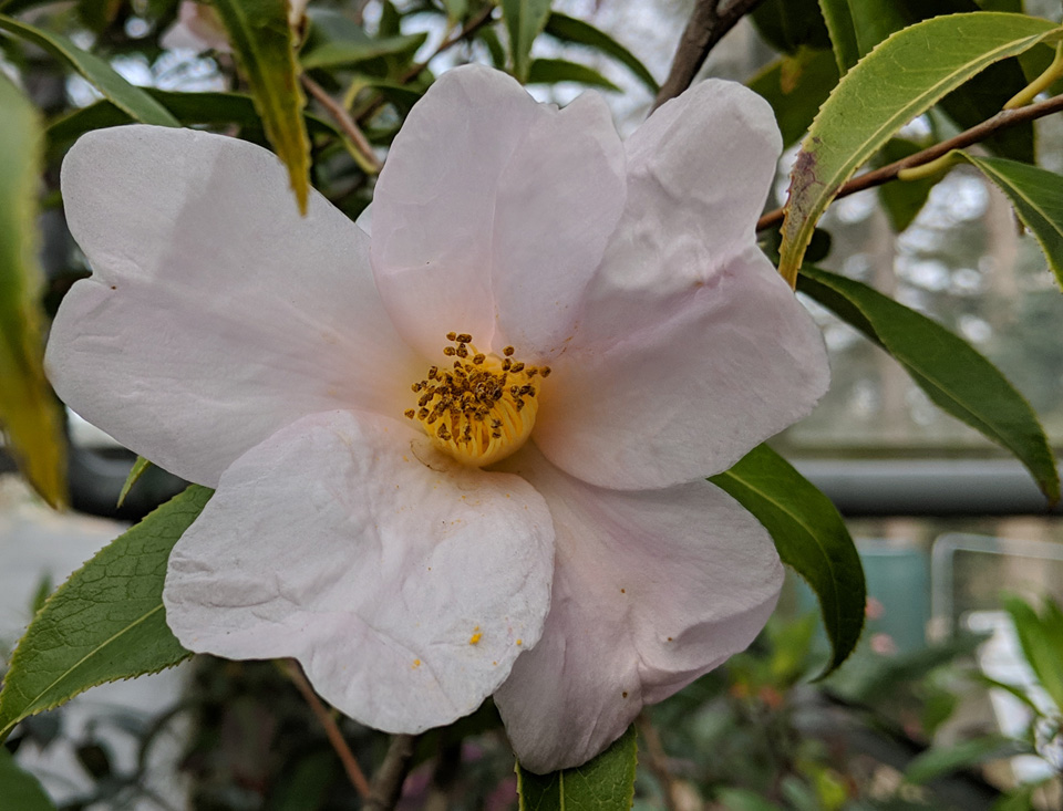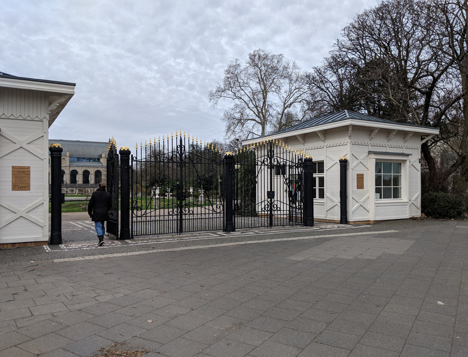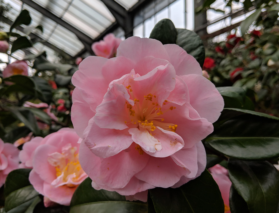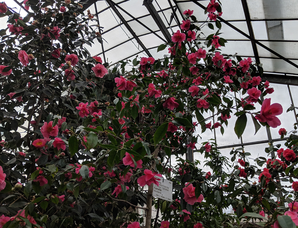 12.03.2019: Wir haben vom Stellplatz aus einen Spaziergang hier her gemacht. Das letzte verbliebene Gewächshaus beherbergt eine Kameliensammlung, die z. Zt. blühen.