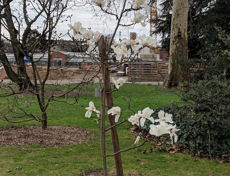 "2018 wurden die maroden Gewächshäuser abgerissen. Bis 2024 sollen die drei neuen Gewächshaushallen dann wieder der Öffentlichkeit zugänglich werden. Z. Zt. ist nur ein kleines Gewächshaus zugänglich, in dem sich die Kameliensammlung befindet.