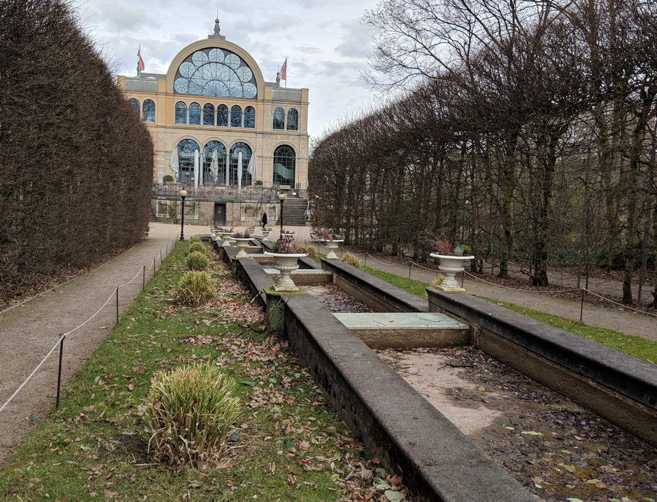 Die Flora ist der Botanische Garten der Stadt Köln. Er wurde 1864 eröffnet und liegt im Stadtteil Riehl. Für den Gesamtentwurf der Flora war der aus Bonn stammende, damals 73-jährige preußische Königliche Generalgartendirektor Peter Joseph Lenné gewonnen worden. Er schuf 1862 einen Plan, in dem er den sogenannten „gemischten deutschen Stil“ der Gartenkunst zu einem einheitlichen Bild im Geiste des damals hochmodernen Historismus weiterentwickelte. Lenné verband typische Gartenkunst europäischer Länder zu einem historistischen Gesamtkunstwerk: das Parterre zwischen dem Haupteingang und dem Palmenhaus ist vom französischen Barockgarten inspiriert, die fünfstufige Wasser-Kaskade mit den parallelen Laubengängen folgt dem Beispiel des italienischen Renaissance-Gartens. Die weitere Anlage ist im Stil eines englischen Landschaftsparks modelliert. Die Außenanlagen Lennés führte dessen Schüler Julius Niepraschk aus, der auch bis zu seinem Tod 1890 im Vorstand der Flora AG als Gartendirektor tätig war. Mittelpunkt der neuen Anlage wurde der sogenannte Glaspalast, ein von dem Architekten Max Nohl geschaffener palastartiger Wintergarten aus Eisen und Glas, der sich an den Beispielen des Pariser Jardin d’hiver oder des Londoner Crystal Palace orientierte. Das Bauwerk verbindet Elemente der Neorenaissance mit denen des Romanischen Rundbogenstils und nimmt einige Anklänge an die damals populäre Maurische Architektur. Der aus Eisen und Glas bestehende Bau besaß eine Länge von 57 Metern, war 22,50 Meter breit und 18 Meter hoch. Das ebenfalls „Flora“ genannte Gebäude diente als Palmenhaus, wurde dabei gleichzeitig aber auch für festliche Bälle genutzt.