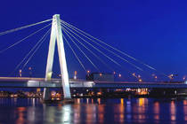 Die 1959 eröffnete Severinsbrücke war der erste vollständige Brückenneubau in Köln nach dem Zweiten Weltkrieg. Die Schrägseilbrücke verbindet das Severinsviertel über den Rhein und den Rheinauhafen mit dem rechtsrheinischen Stadtteil Köln-Deutz sowie den innerstädtischen Autoverkehr mit den rechtsrheinischen Ringstraßen (zuerst Gotenring) und Fernverkehrsstraßen, vor allem der B 55 und der A 59. Den Stadtbahnlinien 3 und 4 steht ein besonderer Bahnkörper mit den beiderseitigen Haltestellen Severinstraße und Suevenstraße zur Verfügung. Die Severinsbrücke ist eine seilverspannte Balkenbrücke mit 691 Metern Länge und 29,50 Metern Breite. Die größte Stützweite ist 302 m lang. Der Pylon ragt 77,2 m über das Brückenfundament hinaus. Insgesamt wurden 8.300 Tonnen Stahl verbaut. Die Baukosten betrugen 25,3 Millionen D-Mark. Bei ihrer Eröffnung war sie die Schrägseilbrücke mit der längsten Hauptspannweite der Welt und die erste mit einem A-förmigen Pylon. Einen ähnlichen weist die 1979 fertiggestellte Oktober-Brücke, im russischen Tscherepowez die Scheksna quert, auf, deren Konstruktion an die der Severinsbrücke erinnert. Das Bauwerk erhielt 1967, nicht zuletzt seiner innovativen Konstruktion wegen, den Kölner Architekturpreis.
