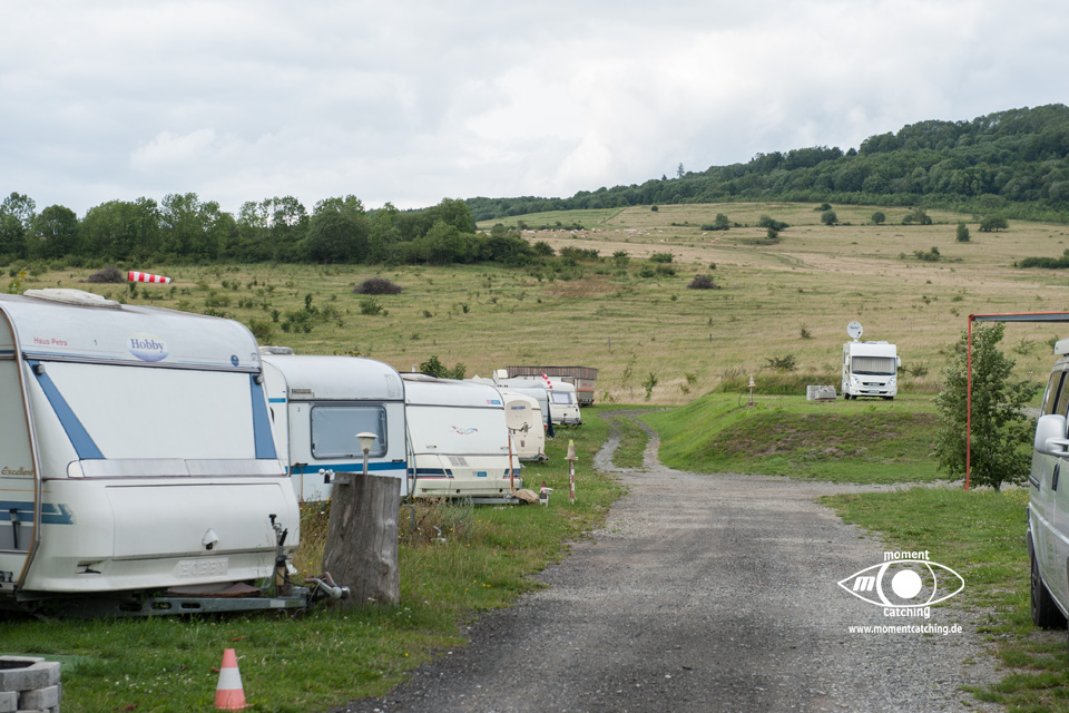 - Die Stellplätze verteilen sich auf zwei Areale. Man steht auf Schotter bzw. auf Gras. Der überwiegende Teil der Stellflächen ist sehr uneben.