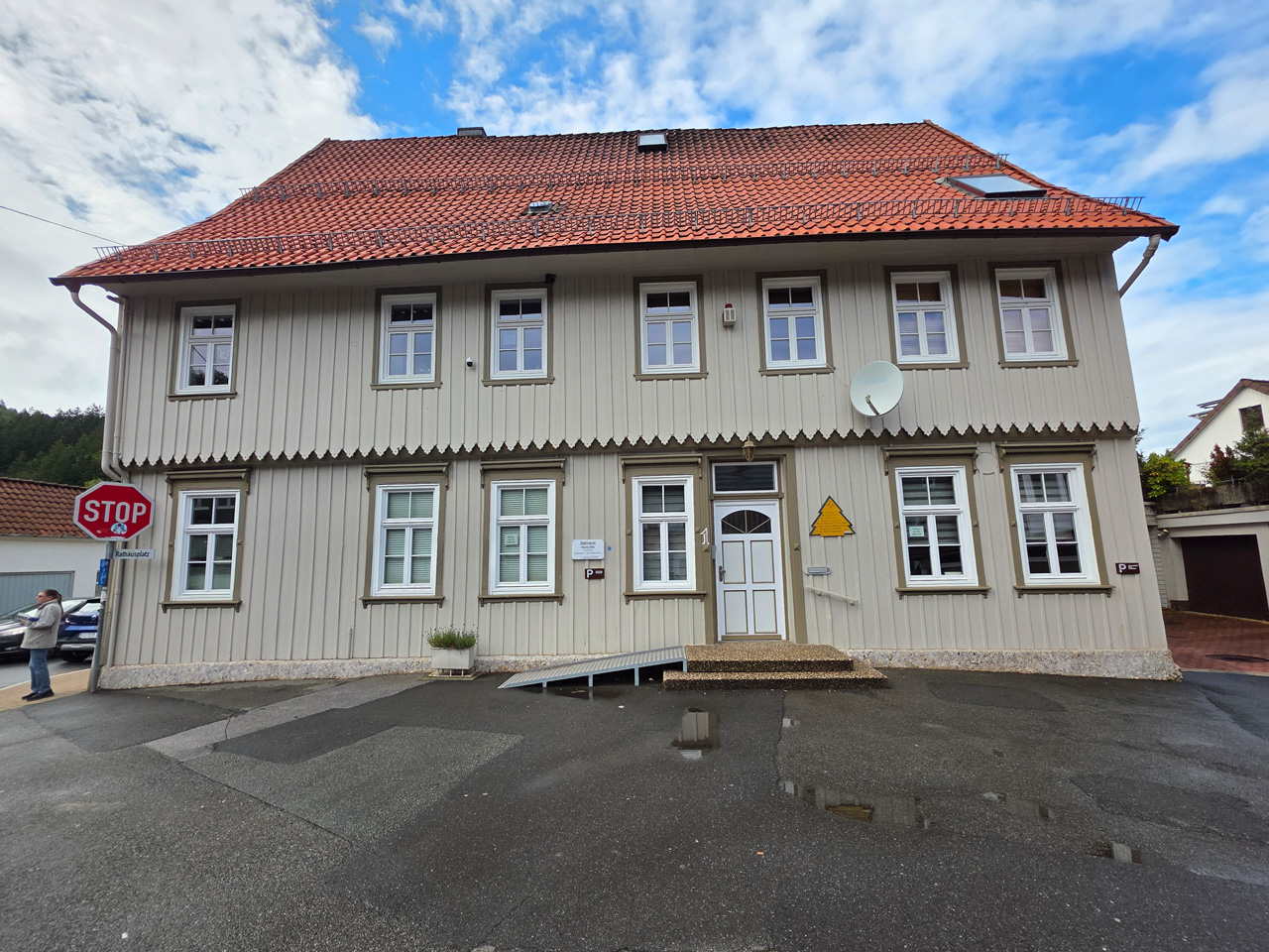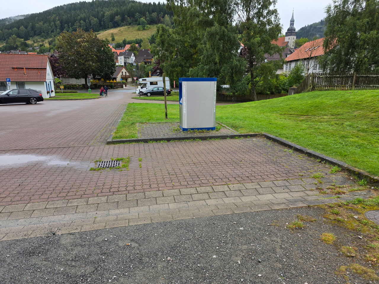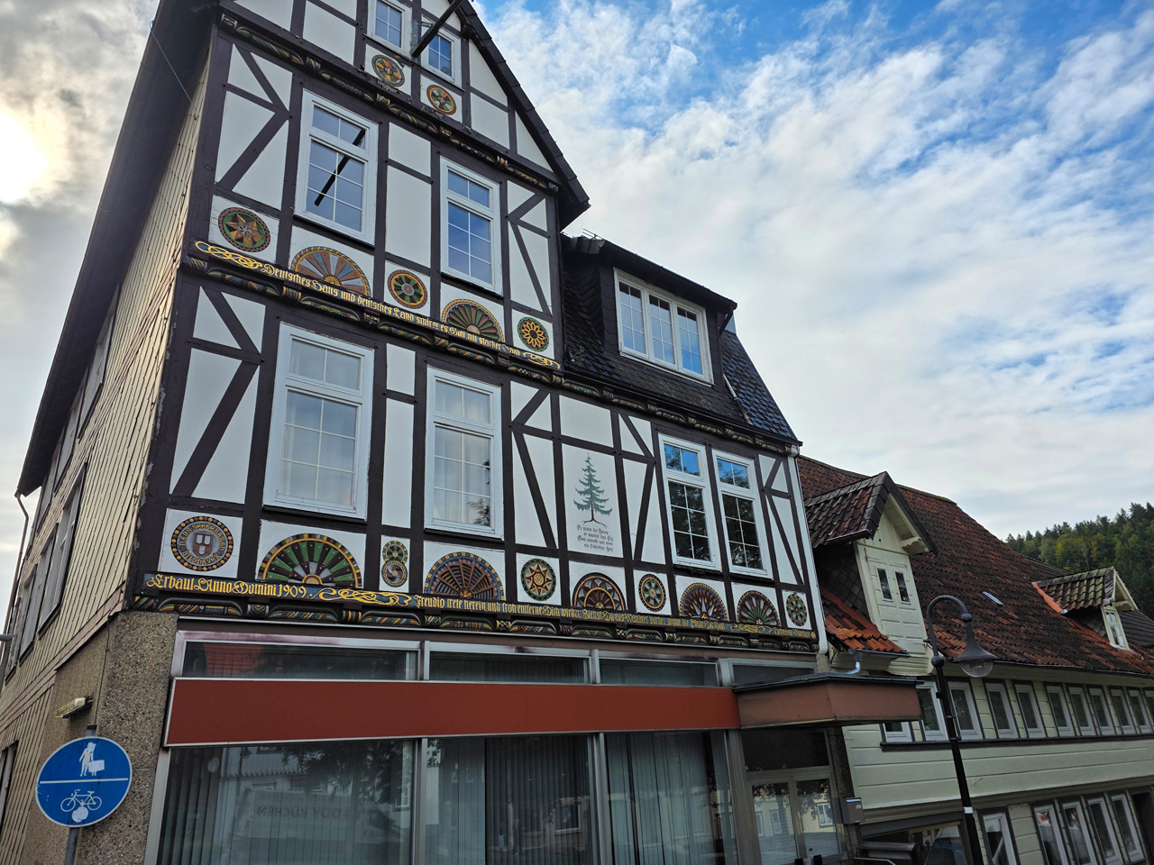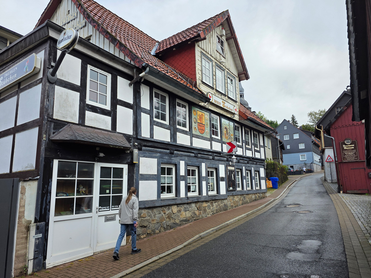 Der Wetterbericht sollte Recht behalten. Gegen 15:00 Uhr hörte der Regen tatsächlich auf. Wir sind zu einem kurzen Erkundungsspaziergang gestartet. Die Touristeninformation ist direkt am Platz. Wir haben dort die Stellplatzgebühren bezahlt, allerdings erstmal nur für drei Tage. Verlängern können wir ja immer noch. Der Ortsspaziergang hat uns gezeigt, das man hier kein Geld im Überfluss hat. Teilweise sehen Häuser aus, als ob sie nicht bewohnt sind. Die meisten Gebäude sind in einem traurigen Instandhaltungszustand. Geschäfte gibt es keine mehr. Auch der größte Teil ehemaliger Gaststätten ist geschlossen. Die Paul-Gerhardt-Kirche, die auch von außen einen guten Eindruck macht war sogar geöffnet. Uns offenbarte sich eine Kirche mit historischem Outfit. Beeindruckend ist der zweistöckige Kanzelaltar. Er stammt von 1719 und wurde 1966 rekonstruiert. Auf seiner hohen Predella wird das Abendmahl so wie ein Schweinskopf und Judas mit einem Geldbeutel gezeigt. Das Taufbecken stammt noch aus der alten Holzkirche. Die doppelgeschossigen Emporen haben Brüstungen aus Balustern und werden von verzierten Pfeilern getragen. Die Orgel mit 22 Registern wurde 1684 von Johann Friedrich Besser gebaut. Eine sehr sehenswerte Kirche. Von der Kirche sind wir zu dem Marktplatz gelaufen. Er zeugt noch von der Zeit, wo Lautenthal eine wohlhabendere Stadt war. Hier steht auch das alte Rathaus, in dem sich heute ein Hotel befindet. Fast alle Gebäude hatten hier früher eine direkte Verbindung zum Bergbau. Man merkt hier sehr deutlich, dass die Jugend fehlt. Sie ist anscheinend mit dem Sterben des Bergbaues verschwunden. Wir sind zurück zum Womo. In der Zwischenzeit war sogar die Bewölkung etwas aufgerissen und zwischendurch zeigte sich die Sonne auch Mal.