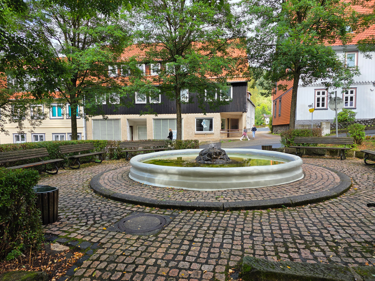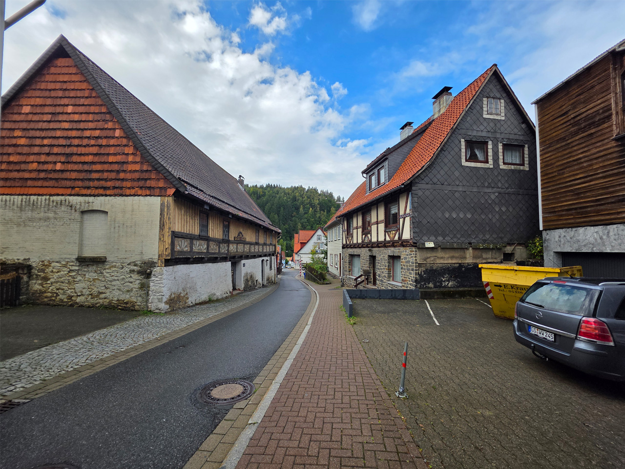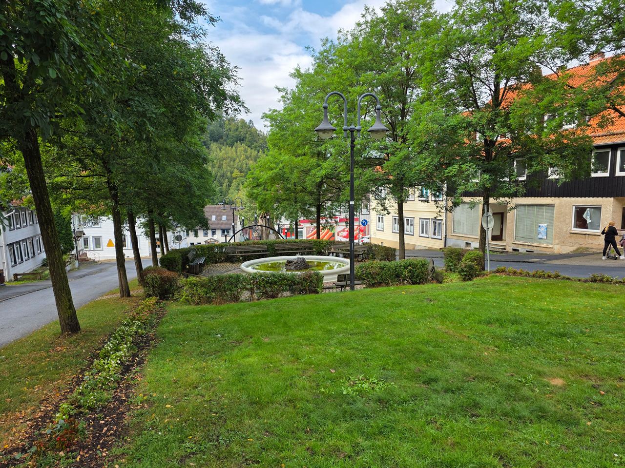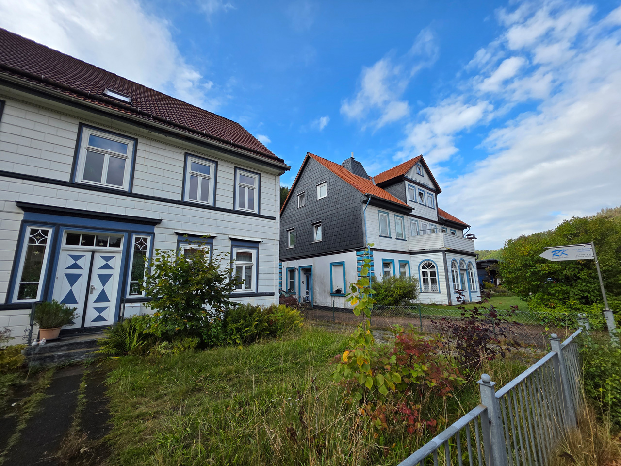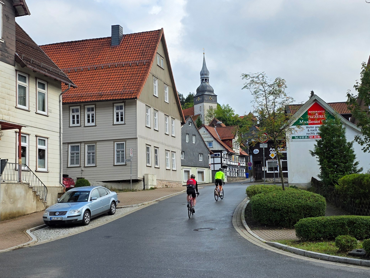 Der Wetterbericht sollte Recht behalten. Gegen 15:00 Uhr hörte der Regen tatsächlich auf. Wir sind zu einem kurzen Erkundungsspaziergang gestartet. Die Touristeninformation ist direkt am Platz. Wir haben dort die Stellplatzgebühren bezahlt, allerdings erstmal nur für drei Tage. Verlängern können wir ja immer noch. Der Ortsspaziergang hat uns gezeigt, das man hier kein Geld im Überfluss hat. Teilweise sehen Häuser aus, als ob sie nicht bewohnt sind. Die meisten Gebäude sind in einem traurigen Instandhaltungszustand. Geschäfte gibt es keine mehr. Auch der größte Teil ehemaliger Gaststätten ist geschlossen. Die Paul-Gerhardt-Kirche, die auch von außen einen guten Eindruck macht war sogar geöffnet. Uns offenbarte sich eine Kirche mit historischem Outfit. Beeindruckend ist der zweistöckige Kanzelaltar. Er stammt von 1719 und wurde 1966 rekonstruiert. Auf seiner hohen Predella wird das Abendmahl so wie ein Schweinskopf und Judas mit einem Geldbeutel gezeigt. Das Taufbecken stammt noch aus der alten Holzkirche. Die doppelgeschossigen Emporen haben Brüstungen aus Balustern und werden von verzierten Pfeilern getragen. Die Orgel mit 22 Registern wurde 1684 von Johann Friedrich Besser gebaut. Eine sehr sehenswerte Kirche. Von der Kirche sind wir zu dem Marktplatz gelaufen. Er zeugt noch von der Zeit, wo Lautenthal eine wohlhabendere Stadt war. Hier steht auch das alte Rathaus, in dem sich heute ein Hotel befindet. Fast alle Gebäude hatten hier früher eine direkte Verbindung zum Bergbau. Man merkt hier sehr deutlich, dass die Jugend fehlt. Sie ist anscheinend mit dem Sterben des Bergbaues verschwunden. Wir sind zurück zum Womo. In der Zwischenzeit war sogar die Bewölkung etwas aufgerissen und zwischendurch zeigte sich die Sonne auch Mal.
