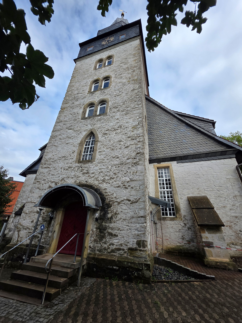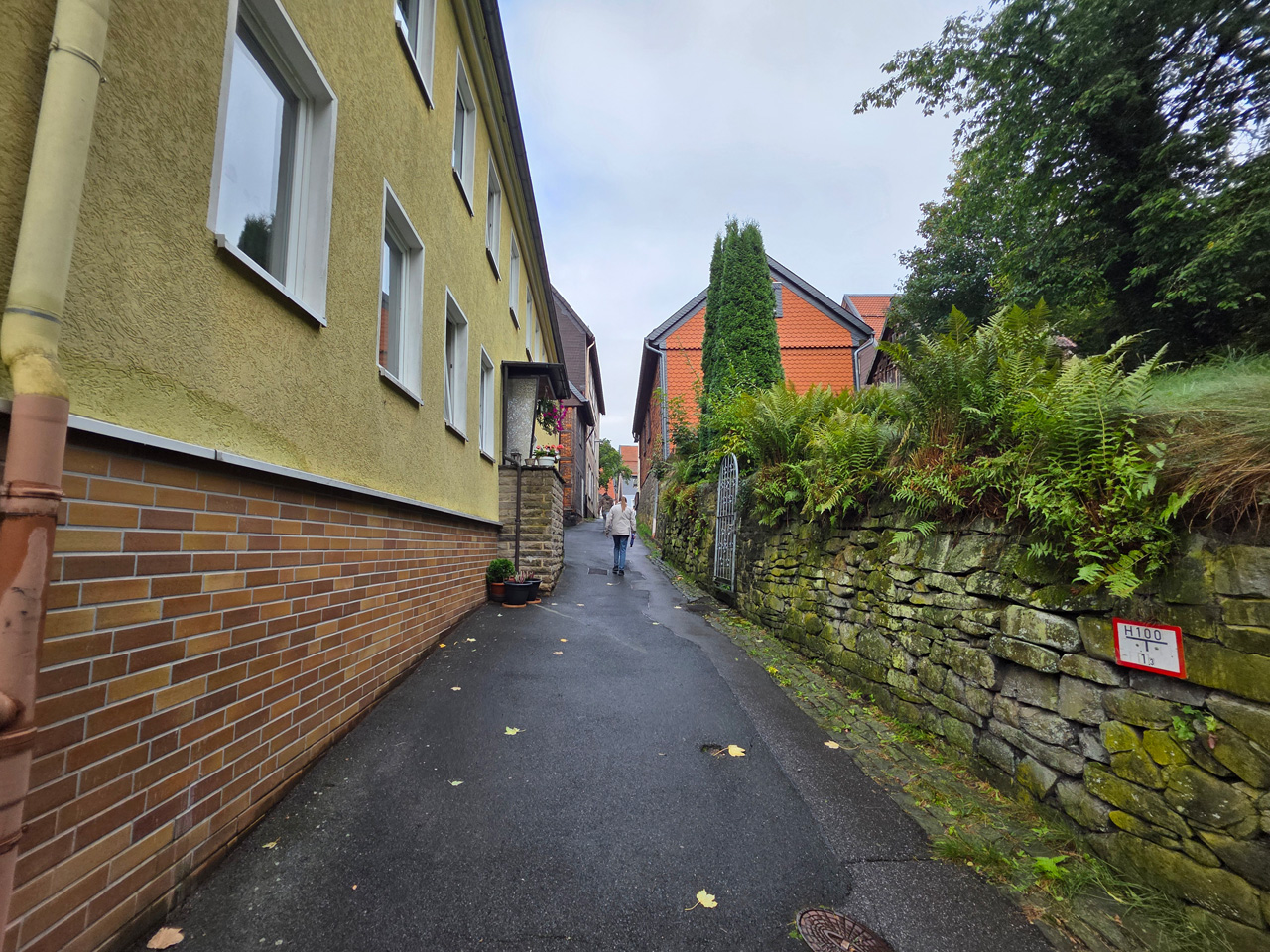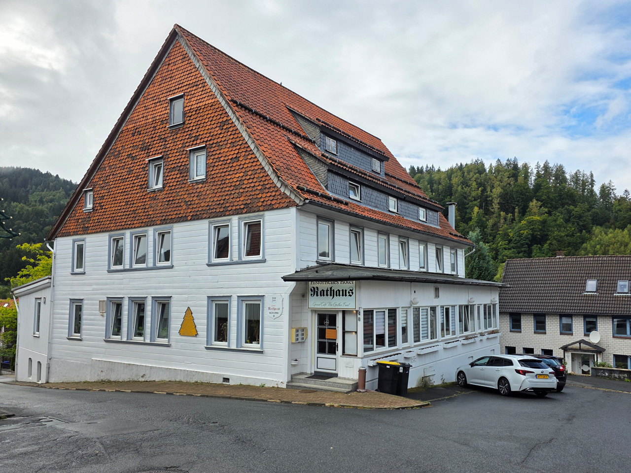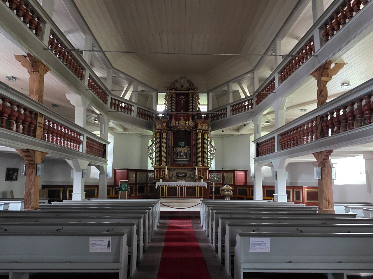Der Wetterbericht sollte Recht behalten. Gegen 15:00 Uhr hörte der Regen tatsächlich auf. Wir sind zu einem kurzen Erkundungsspaziergang gestartet. Die Touristeninformation ist direkt am Platz. Wir haben dort die Stellplatzgebühren bezahlt, allerdings erstmal nur für drei Tage. Verlängern können wir ja immer noch. Der Ortsspaziergang hat uns gezeigt, das man hier kein Geld im Überfluss hat. Teilweise sehen Häuser aus, als ob sie nicht bewohnt sind. Die meisten Gebäude sind in einem traurigen Instandhaltungszustand. Geschäfte gibt es keine mehr. Auch der größte Teil ehemaliger Gaststätten ist geschlossen. Die Paul-Gerhardt-Kirche, die auch von außen einen guten Eindruck macht war sogar geöffnet. Uns offenbarte sich eine Kirche mit historischem Outfit. Beeindruckend ist der zweistöckige Kanzelaltar. Er stammt von 1719 und wurde 1966 rekonstruiert. Auf seiner hohen Predella wird das Abendmahl so wie ein Schweinskopf und Judas mit einem Geldbeutel gezeigt. Das Taufbecken stammt noch aus der alten Holzkirche. Die doppelgeschossigen Emporen haben Brüstungen aus Balustern und werden von verzierten Pfeilern getragen. Die Orgel mit 22 Registern wurde 1684 von Johann Friedrich Besser gebaut. Eine sehr sehenswerte Kirche. Von der Kirche sind wir zu dem Marktplatz gelaufen. Er zeugt noch von der Zeit, wo Lautenthal eine wohlhabendere Stadt war. Hier steht auch das alte Rathaus, in dem sich heute ein Hotel befindet. Fast alle Gebäude hatten hier früher eine direkte Verbindung zum Bergbau. Man merkt hier sehr deutlich, dass die Jugend fehlt. Sie ist anscheinend mit dem Sterben des Bergbaues verschwunden. Wir sind zurück zum Womo. In der Zwischenzeit war sogar die Bewölkung etwas aufgerissen und zwischendurch zeigte sich die Sonne auch Mal.