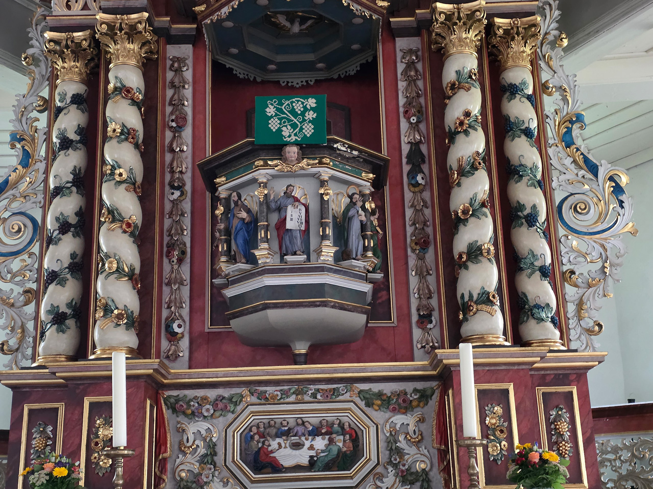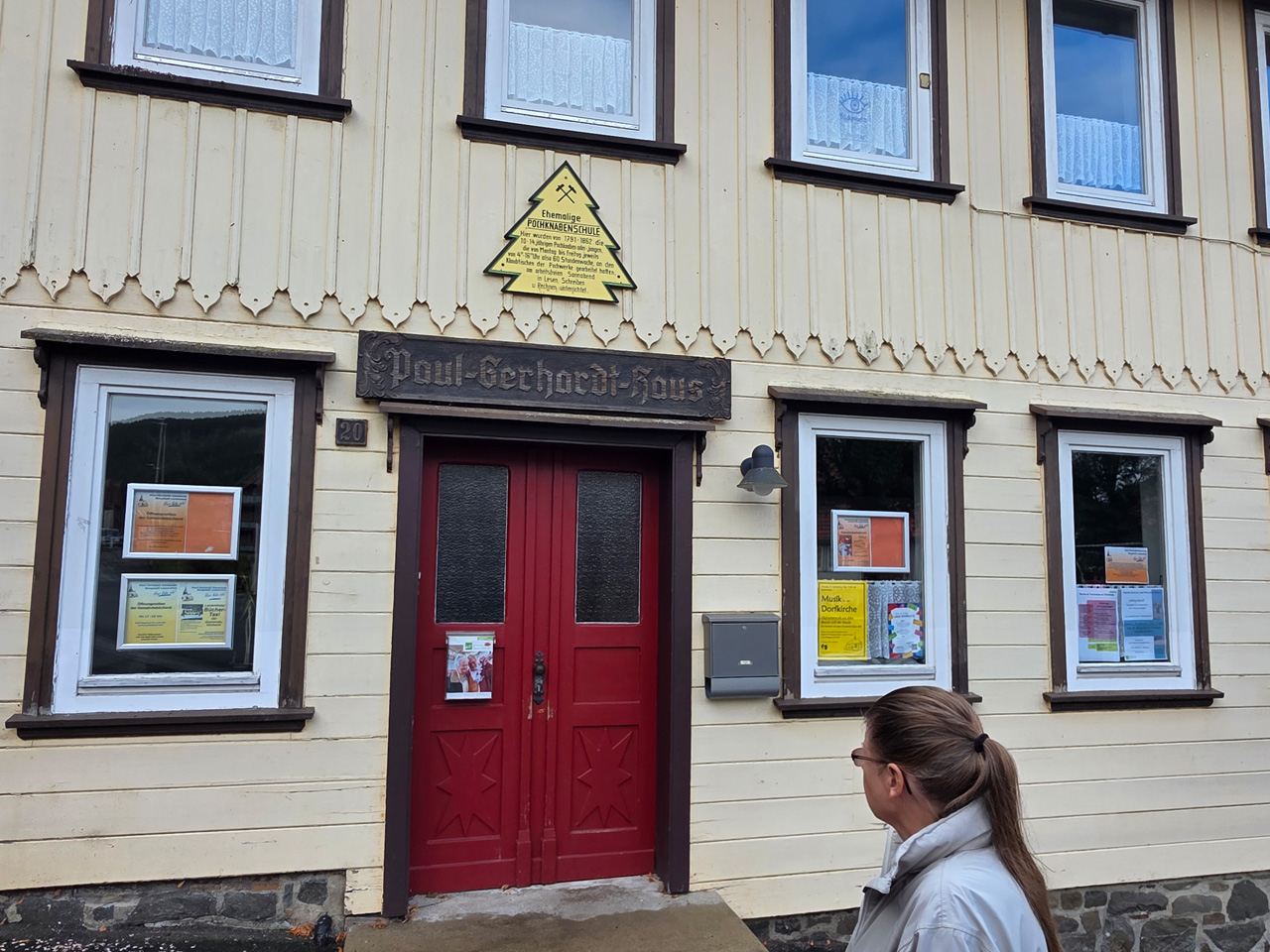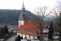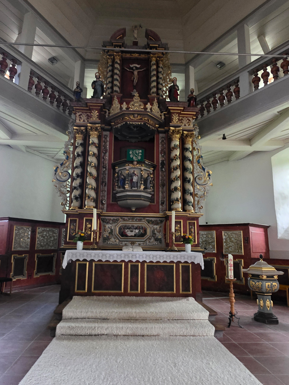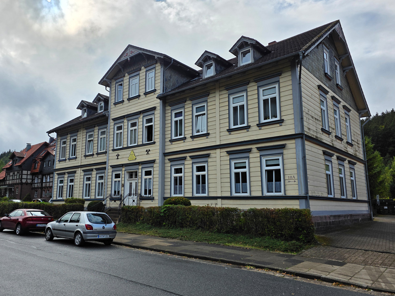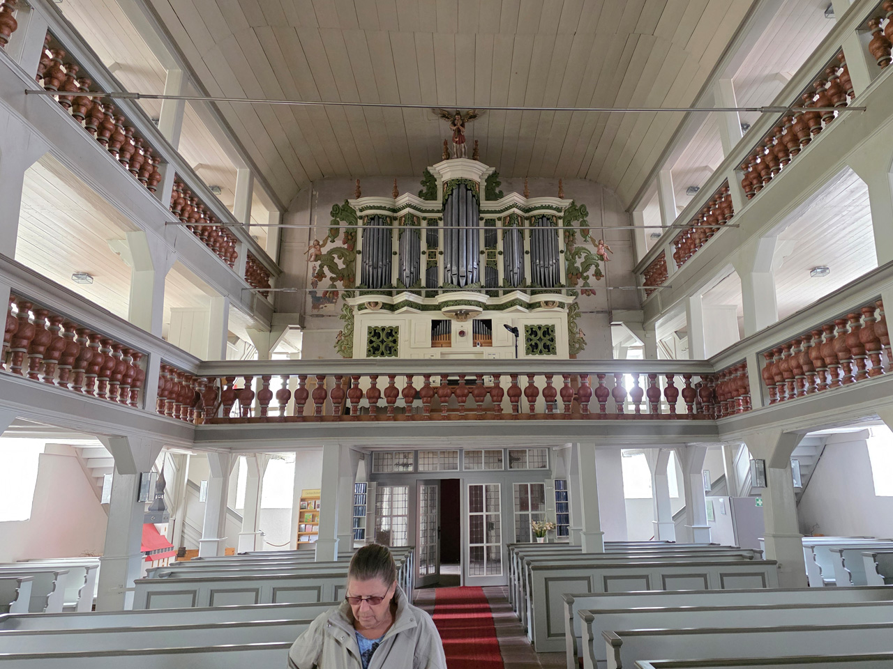 Der Wetterbericht sollte Recht behalten. Gegen 15:00 Uhr hörte der Regen tatsächlich auf. Wir sind zu einem kurzen Erkundungsspaziergang gestartet. Die Touristeninformation ist direkt am Platz. Wir haben dort die Stellplatzgebühren bezahlt, allerdings erstmal nur für drei Tage. Verlängern können wir ja immer noch. Der Ortsspaziergang hat uns gezeigt, das man hier kein Geld im Überfluss hat. Teilweise sehen Häuser aus, als ob sie nicht bewohnt sind. Die meisten Gebäude sind in einem traurigen Instandhaltungszustand. Geschäfte gibt es keine mehr. Auch der größte Teil ehemaliger Gaststätten ist geschlossen. Die Paul-Gerhardt-Kirche, die auch von außen einen guten Eindruck macht war sogar geöffnet. Uns offenbarte sich eine Kirche mit historischem Outfit. Beeindruckend ist der zweistöckige Kanzelaltar. Er stammt von 1719 und wurde 1966 rekonstruiert. Auf seiner hohen Predella wird das Abendmahl so wie ein Schweinskopf und Judas mit einem Geldbeutel gezeigt. Das Taufbecken stammt noch aus der alten Holzkirche. Die doppelgeschossigen Emporen haben Brüstungen aus Balustern und werden von verzierten Pfeilern getragen. Die Orgel mit 22 Registern wurde 1684 von Johann Friedrich Besser gebaut. Eine sehr sehenswerte Kirche. Von der Kirche sind wir zu dem Marktplatz gelaufen. Er zeugt noch von der Zeit, wo Lautenthal eine wohlhabendere Stadt war. Hier steht auch das alte Rathaus, in dem sich heute ein Hotel befindet. Fast alle Gebäude hatten hier früher eine direkte Verbindung zum Bergbau. Man merkt hier sehr deutlich, dass die Jugend fehlt. Sie ist anscheinend mit dem Sterben des Bergbaues verschwunden. Wir sind zurück zum Womo. In der Zwischenzeit war sogar die Bewölkung etwas aufgerissen und zwischendurch zeigte sich die Sonne auch Mal.