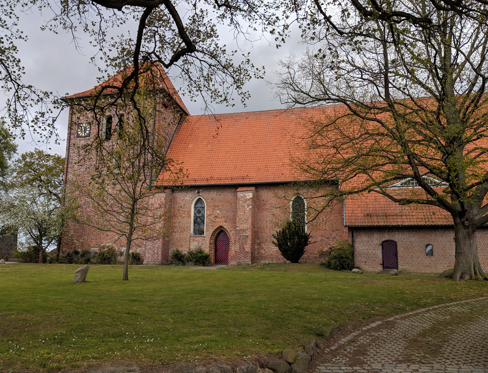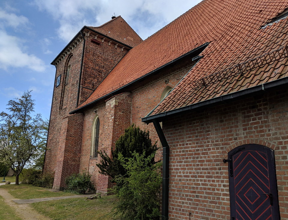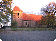 Baubeginn der Kirche ist um 1245 als Gründung der Schauenburger Landesherren. Der frühgotische Backsteinbau (ähnlich Großenbrode um 1230, Neukirchen um 1240), war ursprünglich wohl eine flach gedeckte Kastensaalkirche, ohne Strebepfeiler und Gewölbe, ohne Chor und Turm. Der alte Eingang mit den noch erhaltenen grün‑glasierten Steinen befindet sich an der Südseite. Die Kirche ist dank der Fürsorge früherer Generationen das älteste Bauwerk im Ort. Um 1300 erhält die Kirche ein Gewölbe, vermutlich in Anlehnung an den Ausbau der Klosterkirche in Cismar (Benediktinerkloster seit 1238). Aus dieser Zeit sind noch zwei Maßwerkfenster an der Nordwest- und Südost‑Seite erhalten. Erst um 1460 wird der Turm angebaut durch den Lübecker Maurermeister Ludeke Vromen und seine Maurer, beauftragt von Mathias v.Ratlow aus Lensahn und Bernd v.Qualen aus Koselau. Es gab Streit um die Entlohnung, weil dem Meister vorgeworfen wurde, den oberen Teil des Turmes nicht so hoch fertiggestellt zu haben, wie gewünscht. Der23 Meter hohe Turm mit seinen massiven Mauern wirkt neben dem 36 Meter langen Kirchenschiff recht gedrungen. Das gibt der Kirche aber durch ihre erhöhte Lage (heute: 19 Meter über dem Meeresspiegel) eine charakteristische Seitenansicht. Homepage mit Öffnungszeiten und Eintrittsinformationen. |