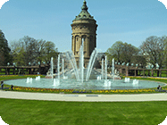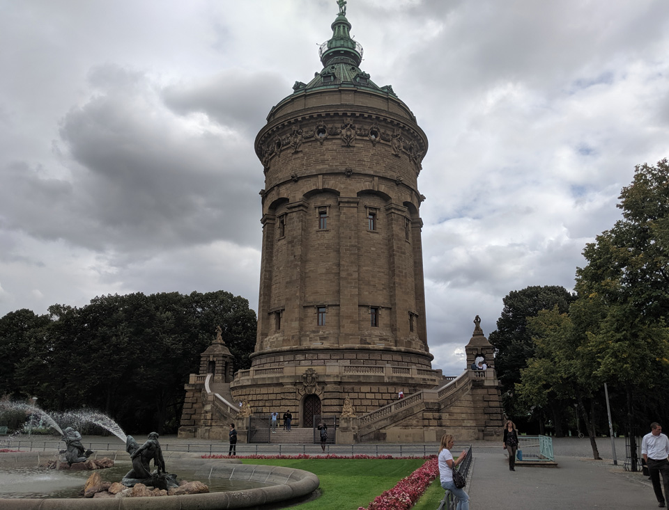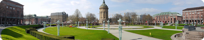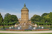 Der Wasserturm ist ein bekanntes Wahrzeichen von Mannheim. Erbaut wurde der Wasserturm von 1886 bis 1889 am heutigen Friedrichsplatz nach den Plänen von Gustav Halmhuber. Der Turm ist 60 Meter hoch und hat einen Durchmesser von 19 Metern. Er war der erste städtische Wasserturm Mannheims und hatte anfangs alle Funktionen der Trinkwasserversorgung zu erfüllen, inklusive der Aufrechterhaltung eines konstanten Wasserdrucks. Nach dem Bau des höher gelegenen Wasserturms Luzenberg 1909 diente er noch bis zum Jahr 2000 als Reservehochbehälter.