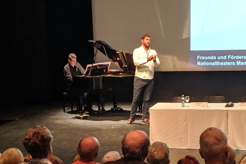14.09.2019: Wir durften bei einer Mitgliederversammlung des Fördervereins Dominic singen hören. Das war ein beeindruckendes Erlebnis. Er hat eine sehr warme Stimme. Das Theater und die Oper sind in die Jahre gekommen und sollen ab Herbst 2010 saniert werden. Das soll wohl 4 Jahre dauern.