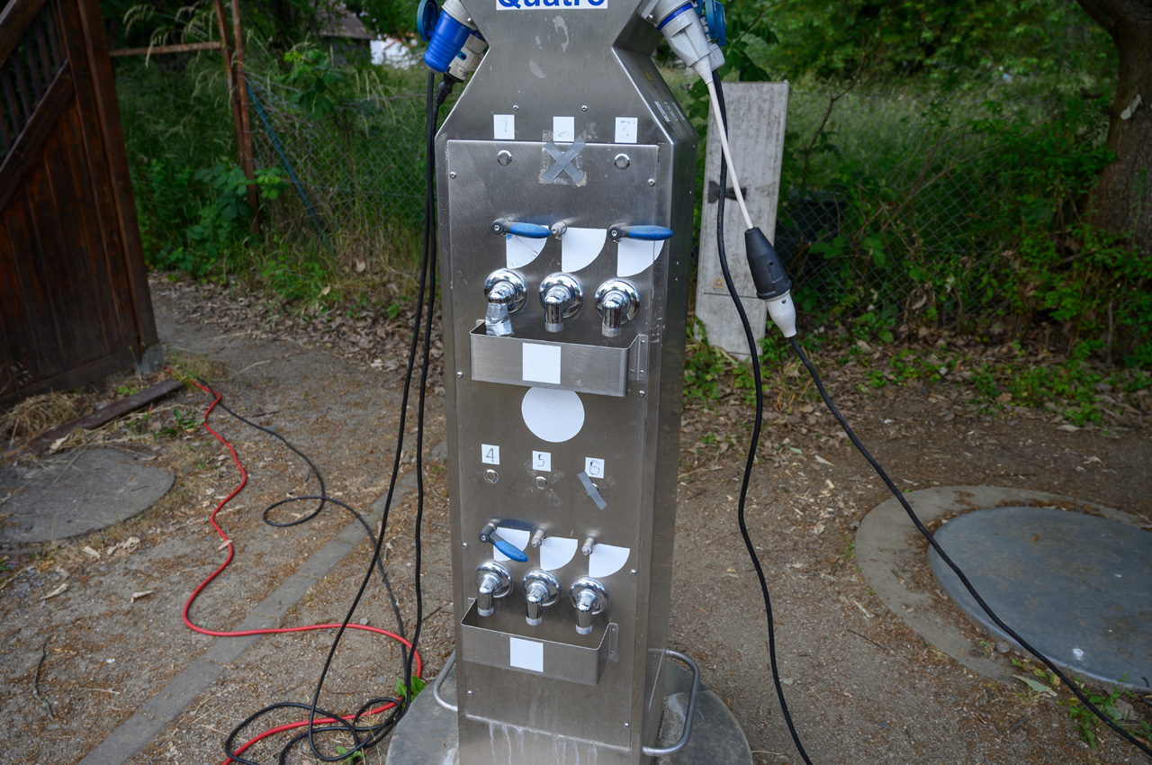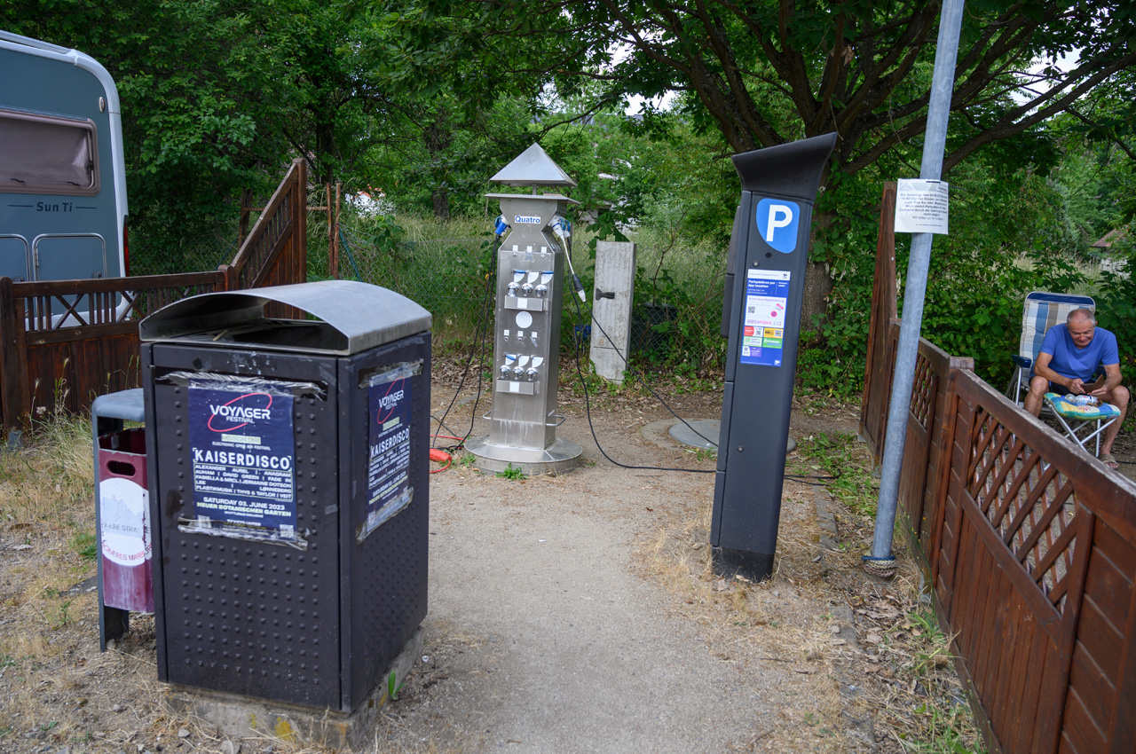 - Es gibt 10 Stromanschlüsse mit CEE und 16A Absicherung. Die beiden Säulen nehmen nur Hartgeld an. Es können 0,50€, 1,-€ oder 2,-€ Münzen verwendet werden. Strom und Wasser funktionieren über die selbe Ansteuerung, dadurch gibt es zu jedem Stromanschluss auch einen Wasseranschluss. Muss man nicht verstehen.