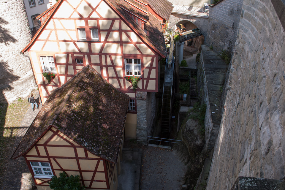 Die Fachwerkhäuser in der Oberstadt in der Steigstraße, der Winzergasse und Kirchstraße bilden ein romantisches Ensemble. Das Fachwerk war um 1920 noch mit Putz bedeckt. Die Laubengänge der „Fülle“ waren um 1900 noch zugemauert. Die Handelsstraße von Konstanz nach Ravensburg verlief über die Steigstraße.