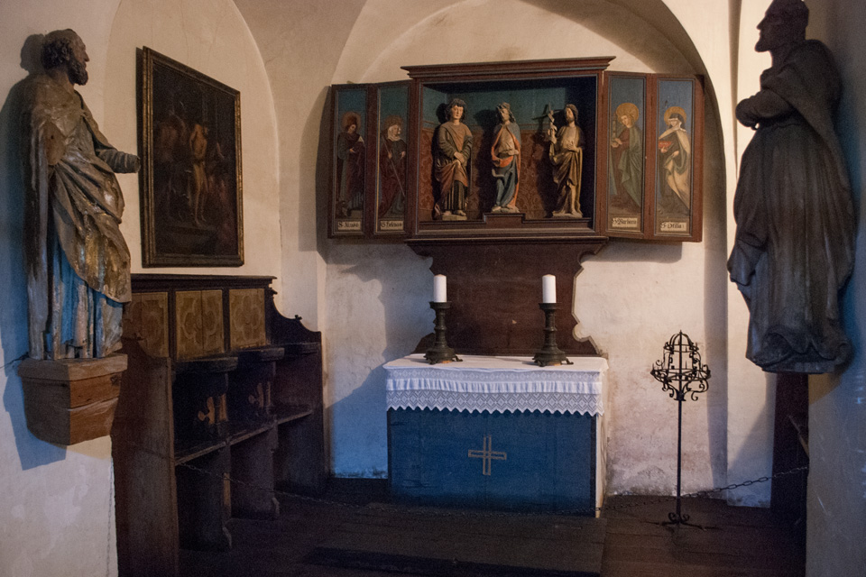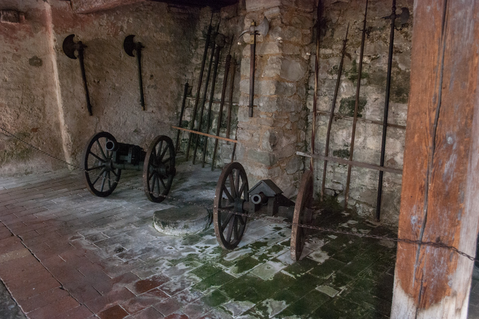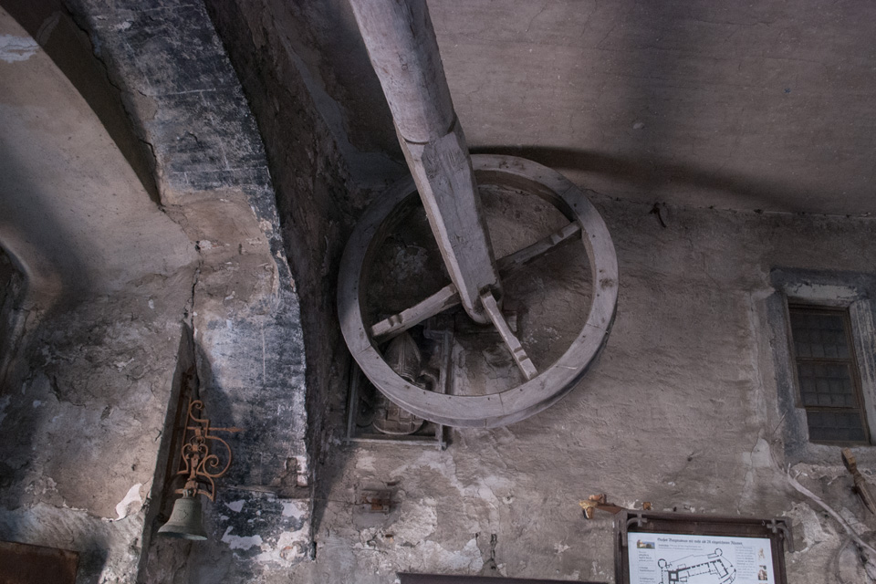 Außenbesichtigung von unten (der Stadtseite) und oben (dem Übergang zur Burg) möglich.