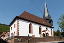 Die Ulrichskirche steht im Norden von Neckargemünd auf einer Terrasse, die früher auch Kirchhof war, über dem Neckar. Das einschiffige spätgotische Bauwerk wurde im 16. Jahrhundert auf den Fundamenten der Vorgängerkirche aus dem 13. Jahrhundert errichtet. Der Chorturm im Osten ist nicht in der Mittelachse der Kirche angeordnet, sondern ist asymmetrisch nach Norden verschoben.