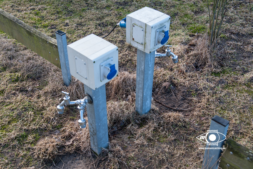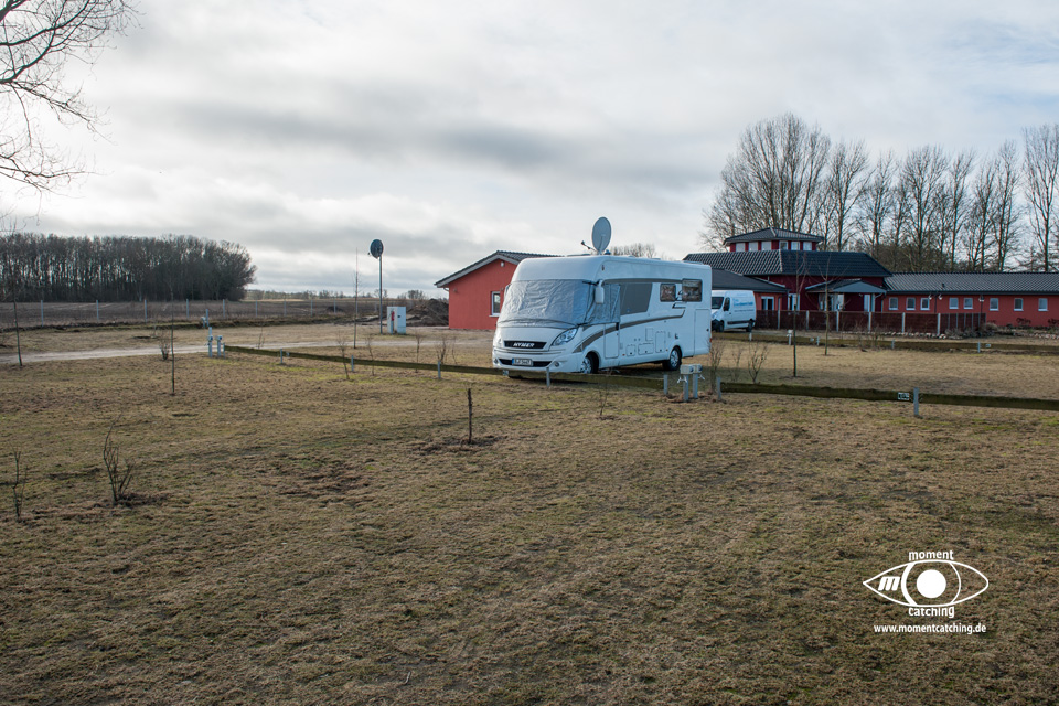 - Die Plätze erstrecken sich über zwei Flächen. Eine Fläche liegt vor dem modernen Campingplatzgebäude, die andere hinter dem Gebäude. Bei der vorderen Fläche gibt es Plätze mit Blick auf das Salzhaff. Insgesamt sind die Stellplätze sehr großzügig von der Fläche.