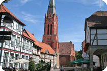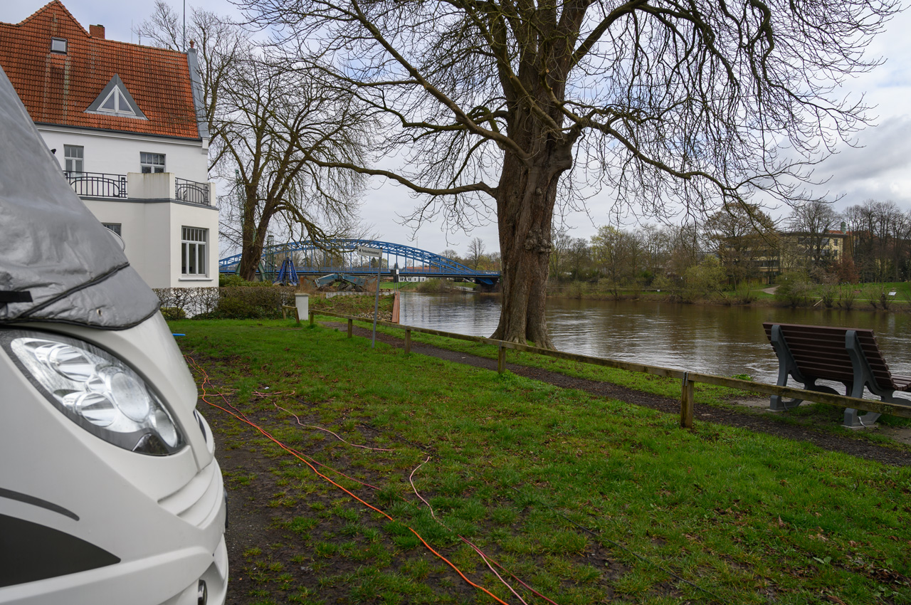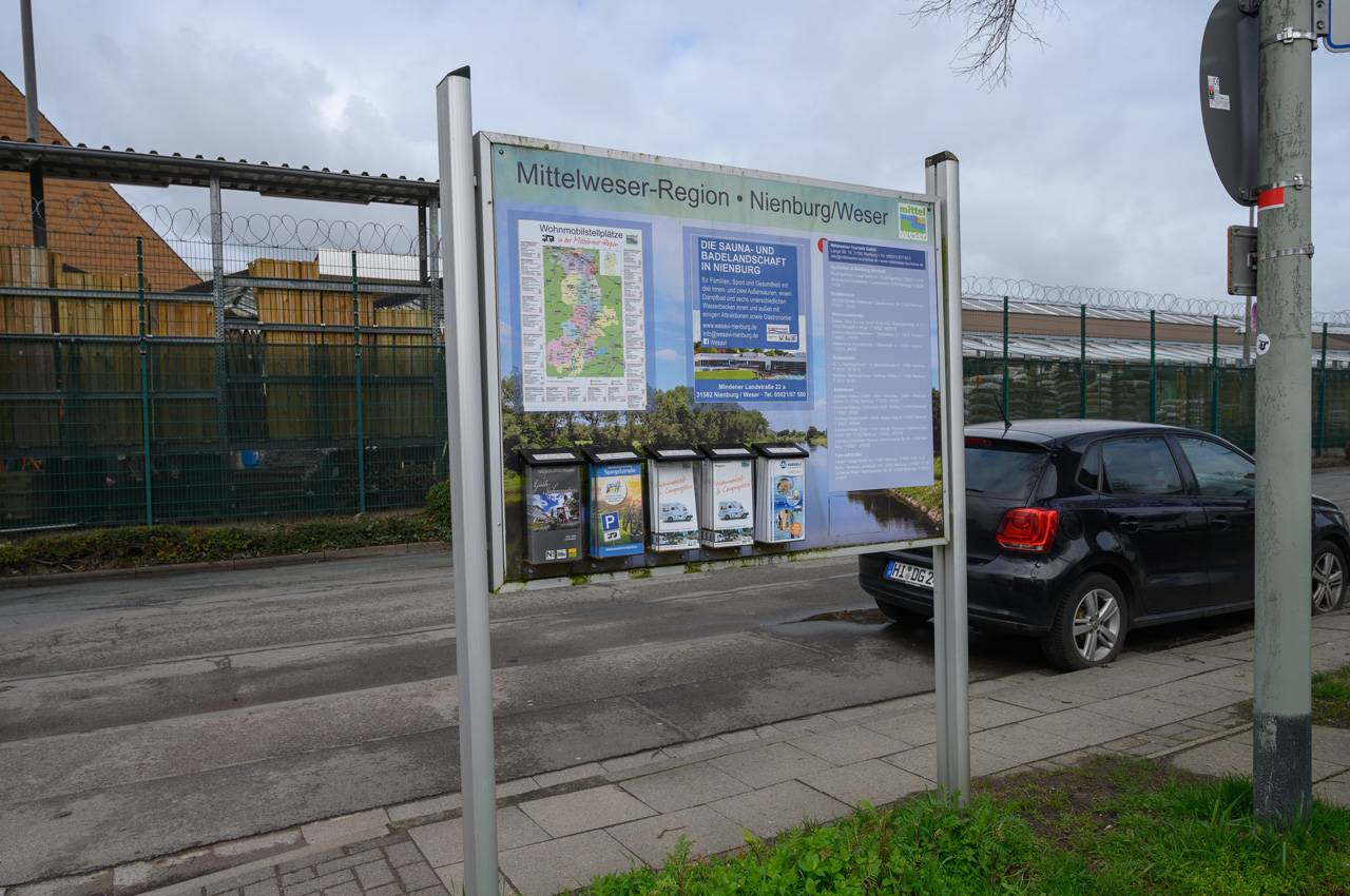 Gegen Mittag sind wir in die Altstadt von Nienburg gelaufen, dass ist vom Womo aus ganze 500 Meter. Die Altstadt von Nienburg ist sehr schön, es gibt hier noch viele historische Häuser in sehr gutem Zustand. Das Rathaus ist ein sehr schöner Anblick, was man von dem sogenannten Wiesenschem Haus nicht behaupten kann, leider keine gelungene Architektur. Die Utlucht und der Rest passen nicht zusammen. Die Kirche St. Martin war verschlossen, wir haben auch keine Öffnungszeiten gefunden. Die Fußgängerzone lebt hier noch richtig. In einem Geschäft für Tresore und Grills, haben wir ein neues Modell von Weber entdeckt. Ein Grill mit einem sehr flachem Gehäuse, fest in einem Wagen montiert, den man komplett zusammenklappen kann. Der ist dann noch ganze 37 cm hoch. Das war sehr verlockend, besonders mir hat der sehr gut gefallen, aber die Vernunft hat gesiegt und wir haben uns entschieden bei unserem alten Webergrill zu bleiben. Interessant war hier der Preisunterschied zwischen dem Geschäft wo wir den Grill entdeckt haben und dem OBI-Markt bei unserem Stellplatz. Das Geschäft in der Altstadt wollte 559,-€ haben und der OBI-Markt hat ihn für 399,-€ angeboten. Im Internet gab es sogar einen Anbieter im Versand, mit 221,-€. Da sollte man doch tatsächlich immer mal ins Internet schauen, bevor man irgendwo einfach drauflos kauft. Direkt in der Innenstadt gab es einen Mediamarkt, dort haben wir uns sowohl für zu Hause wie auch fürs Womo Ersatzzahnbürsten gekauft. Das Zeug ist ja schon fast eine Investition.