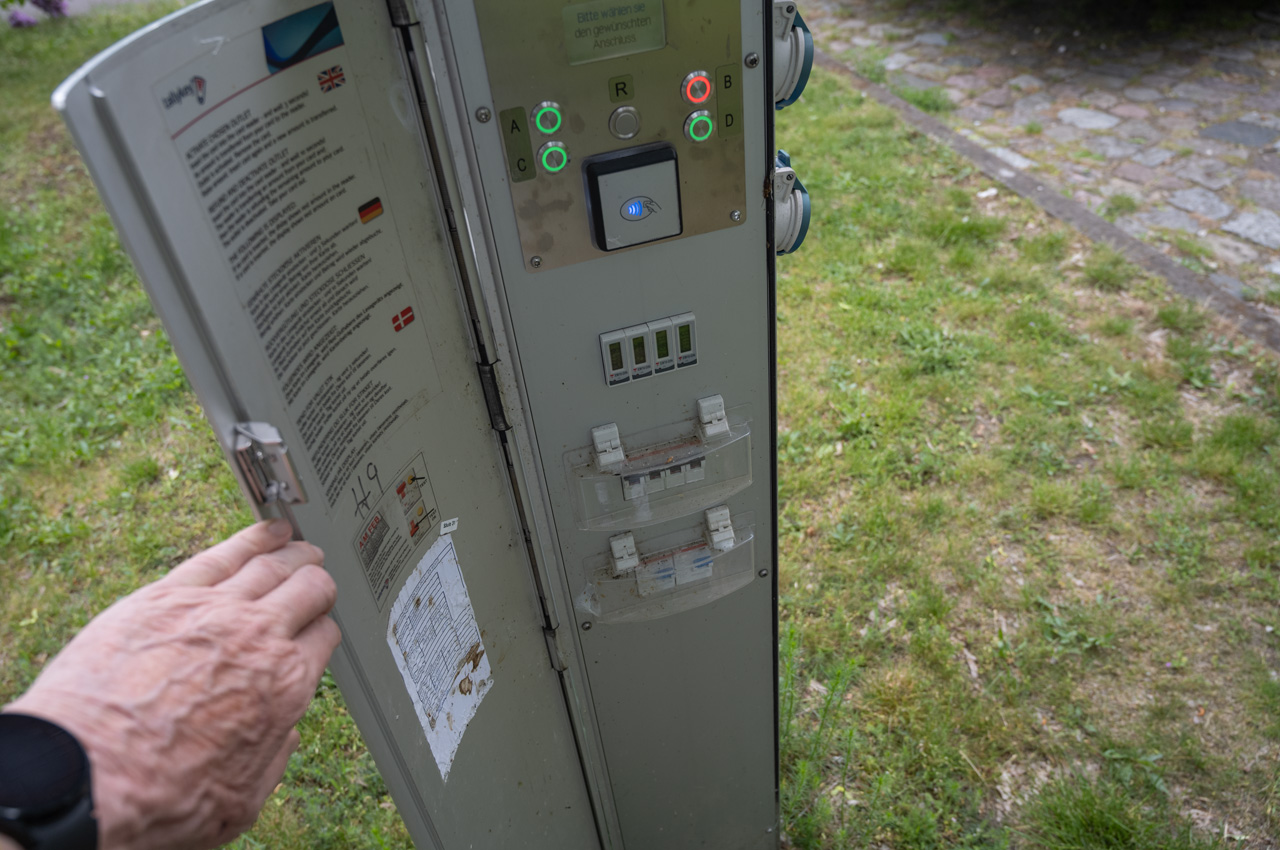 Nach dem Frühstück haben wir uns der Wettersituation geschuldet, dazu entschieden, heute keine Radtour zu machen. Gegen Mittag sind wir zu einem Altstadtspaziergang und zu einem Besuch des Schlossparkes aufgebrochen. Wir sind vorbei am Schloss auf dem Schlossplatz gelaufen. Das Schloss wollen wir nicht besichtigen, da es keine historische Inneneinrichtung mehr hat, wie so viele Schlösser, die die DDR-Zeit über sich ergehen lassen mussten. Auch von außen hat das Schlossgebäude schon wieder die ersten Nässeschäden im Sockelbereich. Da hat man wohl bei der ersten Sanierung nach der Wende gefuscht. Wir sind vorbei am Blumenthalschenhaus und dem Amtshauptmannshaus zur St.-Nicolai-Kirche gelaufen. Die Kirche war geöffnet. Beim Betreten des Westwerkes ist man erstmal etwas irritiert. Vorbei an einer großen Treppe kommt man in eine untere Halle, die heute nur noch für Ausstellungszwecke genutzt wird. Geht man die Treppe nach oben, gelangt man in das Kirchenschiff mit Chor und Orgelempore. Das Kirchenschiff hat als Decke ein Tonnengewölbe aus Holz. Das ist eine sehr interessante Architektur. Auch die Orgelempore einschließlich der Orgel sehen sehr eigenwillig aus. Wir sind zurück zum Schloss gelaufen, vorbei an dem Monument der Kurfürstin Louise Henriette, zum Eingang des Schlossparkes. Seit 2009, wo auf dem Gelände des Schlossparkes die Landesgartenschau vom Land Brandenburg stattgefunden hat, ist der Zutritt zum Park kostenpflichtig. Mit 6,-€ ist man dabei. Wir brauchten auf Grund unserer Schwerbehinderung nur 4,-€ bezahlen. Der Park hat uns nicht begeistert. Der größte Teil ist ein einfacher Landschaftspark, der schon einen verwilderten Eindruck macht. Als Gipfel empfanden wir, dass man, um die Fontäne im Schlossteich sehen zu können, einen Euro in eine Bezahlsäule stecken muss. Dann läuft die Fontäne 5 Minuten. Der sehr aufwendig gestaltete ehemalige Bereich der Landesgartenschau war schon etwas interessanter, ob er allerdings 6,-€ Eintritt rechtfertigt, darüber kann man streiten. Wir haben den Park durch einen Seitenausgang am Schlosshafen verlassen und waren dadurch schnell wieder an unserem Womo. Dort gab es unseren Nachmittagskaffee.