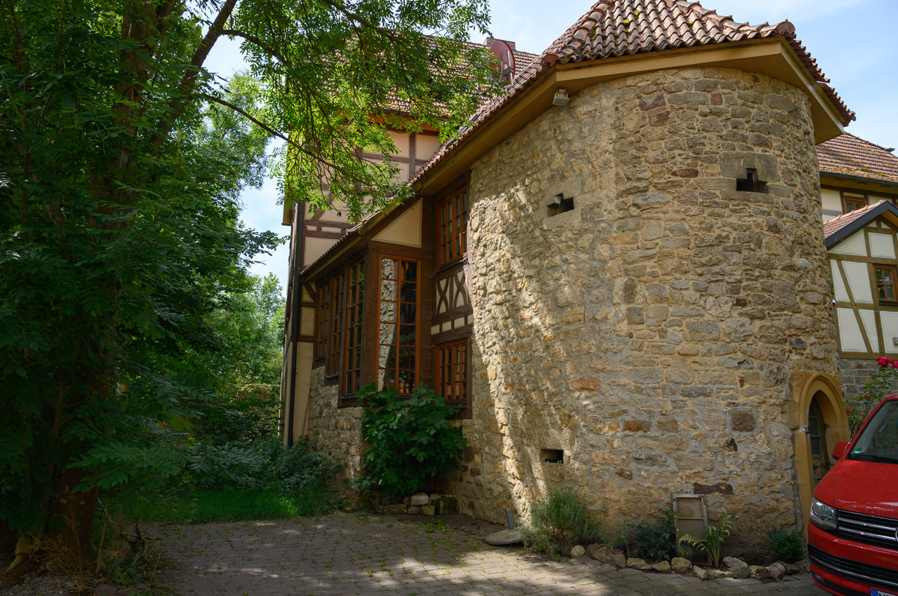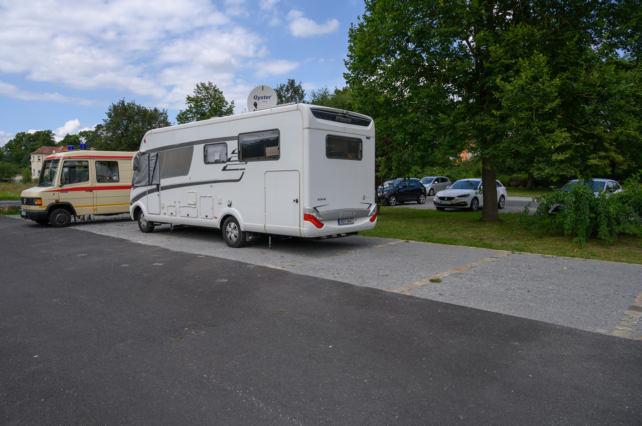 Auf dem Rückweg hatte es unser NIU erheblich leichter. Wir haben bis zum Ort Fladungen die Batterie wieder laden können und dass bei mehr als 50 km/h. Unten angekommen, hatten wir die gleiche Batterieladung wie beim Start am Freilandmuseum. Auf dem Weg zum Womo haben wir im REWE in Nordheim Brötchen besorgt. Susanne brauchte aber noch Milch, die nicht mehr in den NIU-Koffer gepasst hätte. Also haben wir am Womo ausgeladen und sind nochmals zum EDEKA in Ostheim gefahren. Jetzt war aber Faulenzen angesagt.