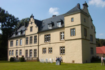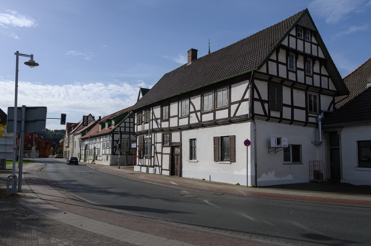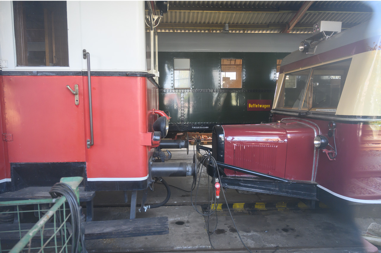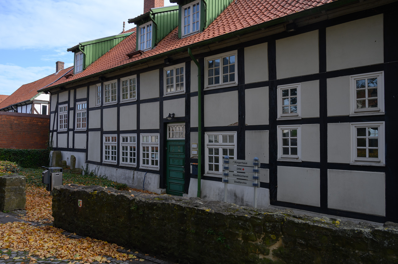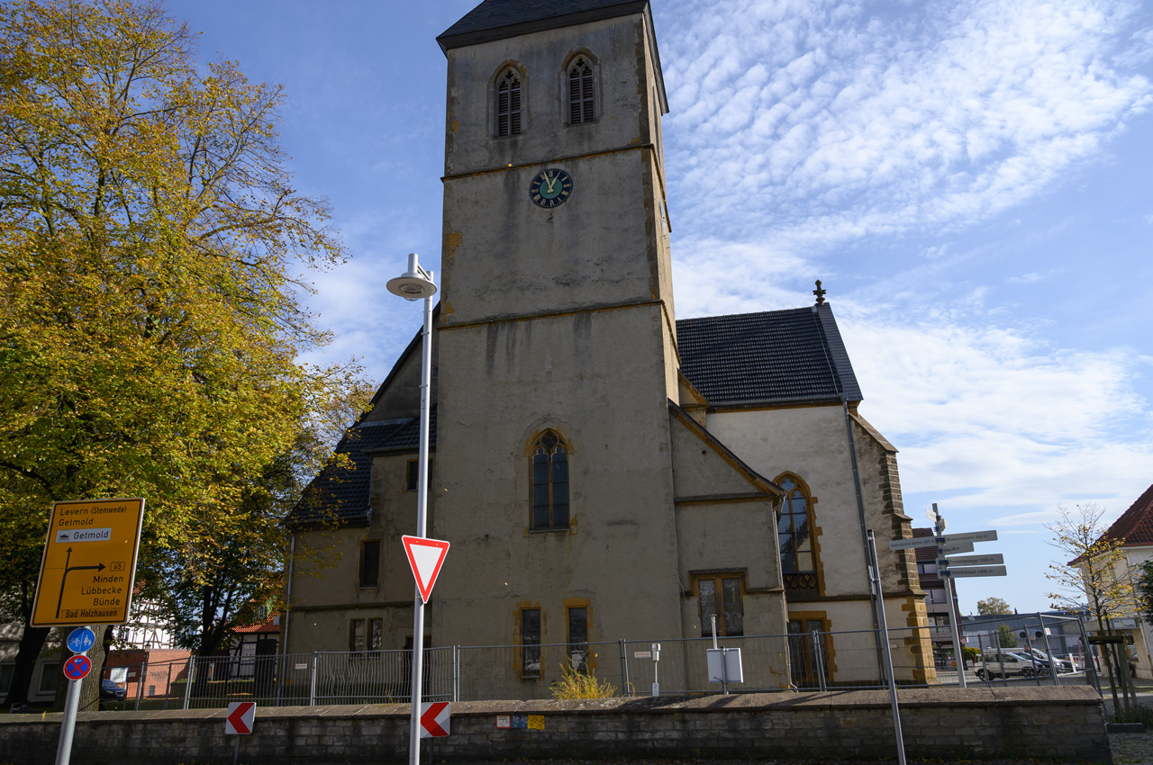 Dabei haben wir den Mittellandkanal überquert und sind durch sehr schöne Landschaft und verschlafene Dorfidyllen gefahren. Unseren NIU haben wir direkt an der St. Dionysius Kirche abgestellt. Die Kirche war dann auch schon die erste Enttäuschung. Weiträumig abgesperrt mit Warnschildern, dass herabstürzende Teile zu Verletzungen führen können. Man kann sie 1x pro Woche in einem Zeitfenster von zwei Stunden besichtigen. Passte für uns nicht. Der Tag ja, aber die Uhrzeit nicht. Wir sind einmal außen herumgelaufen. Wir haben danach vergeblich einen Stadtkern mit Marktplatz oder ähnlichem gesucht. Mehr aus Verzweiflung sind wir nun mit Hilfe von Susannes Handynavigation zum Museumsbahnhof gelaufen. Die Museumsbahn hat eigentlich ihren Sitz in Minden. Es gab aber einen Lokschuppen und einige Waggons aus alten Zeiten. Hat uns aber alles nicht fasziniert. Auf dem Rückweg zum NIU, wollten wir uns noch das Rathaus ansehen. War nicht einfach, weil es komplett eingerüstet ist und ein unscheinbares Gebäude. Eine richtige Touristeninfo gibt es nicht, aber ein Regal mit Infoprospekten. Das stand aber im Flur vom Rathaus und der Zugang zum Flur war verschlossen. Dieser Ort macht insgesamt einen sehr traurigen Eindruck. Die Kirche scheint auseinanderzufallen, viel Leerstand, einschließlich der historischen Gebäude. Ein Ort, den man kein zweites Mal besuchen muss. Wir sind zurück zum NIU und mit ihm nach Getmold am Mittellandkanal gefahren. Dort soll es einen Womo-Stellplatz geben, den ich mir anschauen wollte. Nach einigem Umherirren haben wir ihn dann gefunden. Die nächste Enttäuschung. Kein Platz für uns, zu klein, zu eng und zu teuer.