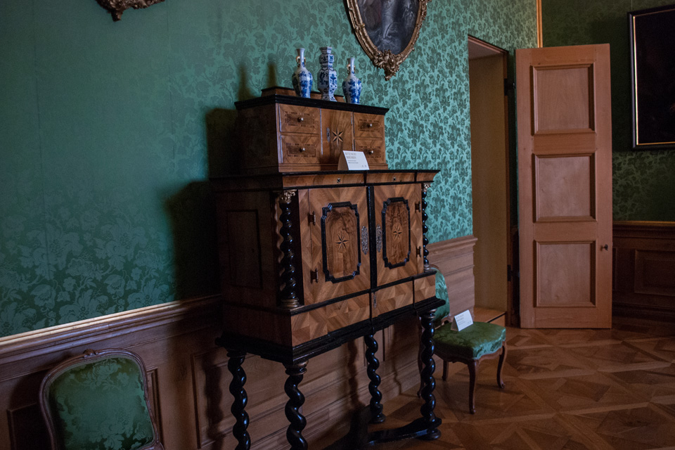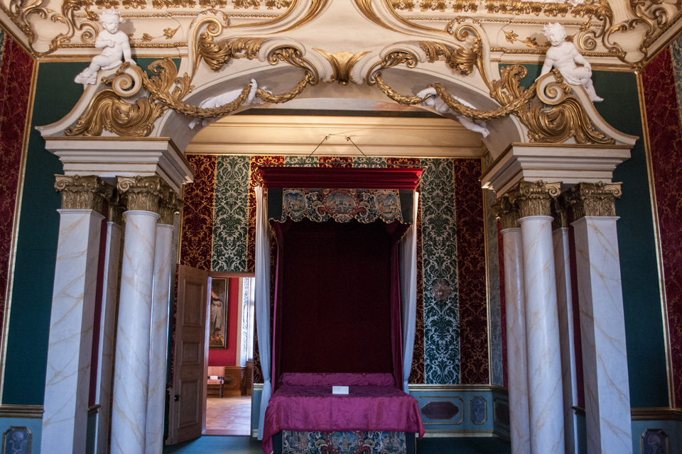 Je weiter man hierbei vom Ahnensaal ausgehend von Saal zu Saal vorschreitend in die Schlafgemächer gelangt, desto verzierter und pompöser werden die Gemächer. Von den Möbeln ist so gut wie nichts mehr erhalten geblieben, so dass man hier auf Versteigerungen angewiesen ist, um das Bild zu vervollständigen.