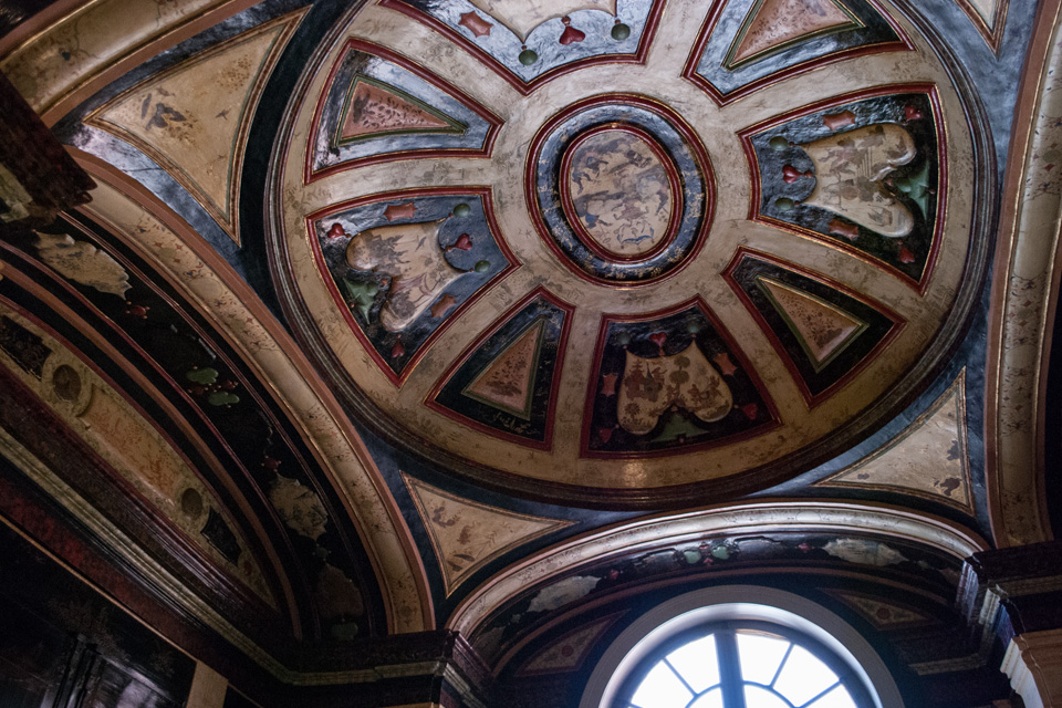 Beeindruckend ist auch die Bodenornamentik, die in verschiedenen Hölzern ausgelegt ein Zeugnis hoher Handwerkskunst darstellt.