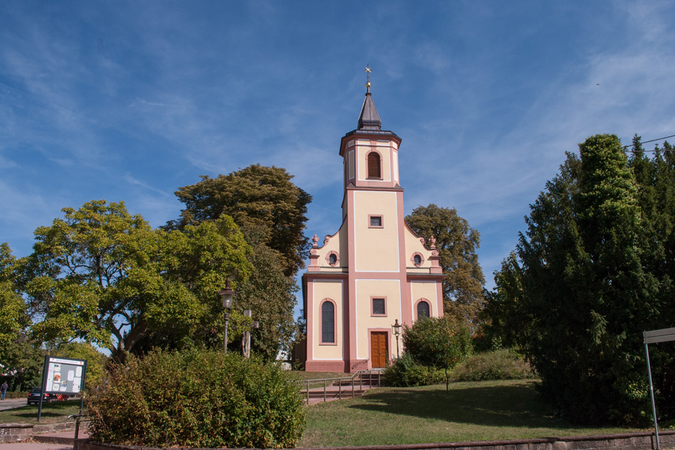 Die Kirche wurde im Jahre 1756 von dem markgräflichen Baumeister Johann Peter Ernst Rohrer erbaut, nachdem bereits im Jahre 1701 von Domenico Egidio Rossi die Fundamente für die Kirche angelegt wurden. Im Jahre 1764 wurde die Kirche eingeweiht.