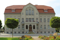 Rathaus nach Plänen von Gustav Bähr (Berlin); 1910 als Warmbad und Gemeindehaus für die Bürger eröffnet. Am Hauptportal erinnert eine pittoreske Glasbemalung an die frühere Funktion eines Badehauses.