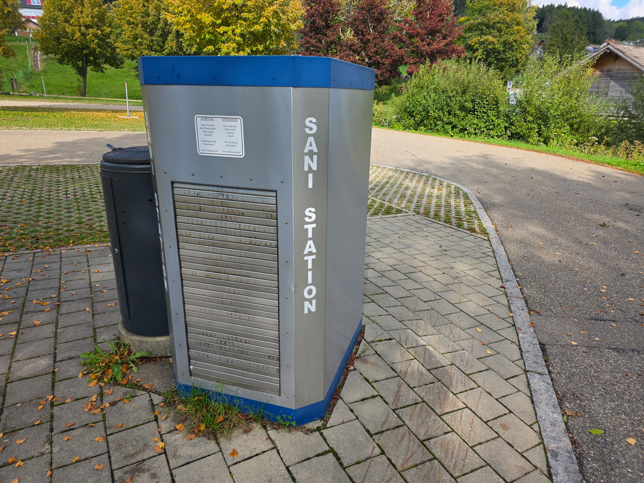 Laut Aushang soll der Platzwart zwischen 18:00 Uhr 19:00 Uhr vor Ort sein. Er tauchte aber schon gegen 16:00 Uhr auf und klopfte gegen die Womos. Wir hatten uns vorher schon verständigt, dass wir hier nur zwei Nächte bleiben wollen. Danach sind wir dann wieder im Rhythmus. Wir haben bezahlt und haben wieder eine Konuskarte bekommen. Als wir den Stromanschluss mit den Chips füttern wollten, stellte sich heraus, dass der Kasten defekt ist. Uns blieb nichts anderes übrig, als den Platz zu wechseln. Wir sind zur anderen Seite gefahren, wo die Sanistation steht. Bei dem Gespräch mit dem Platzwart habe ich erfahren, dass man jeweils in der Mitte, wo die Betonplatten liegen, das Grauwasser ablassen kann. Das hätte ich mich niemals getraut. Eigentlich kann man es dann auch in den Boden laufen lassen, verrückte Regelung.