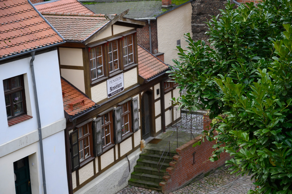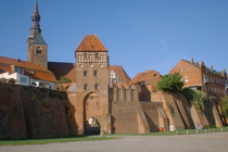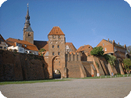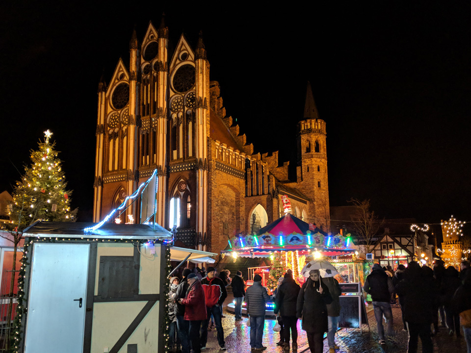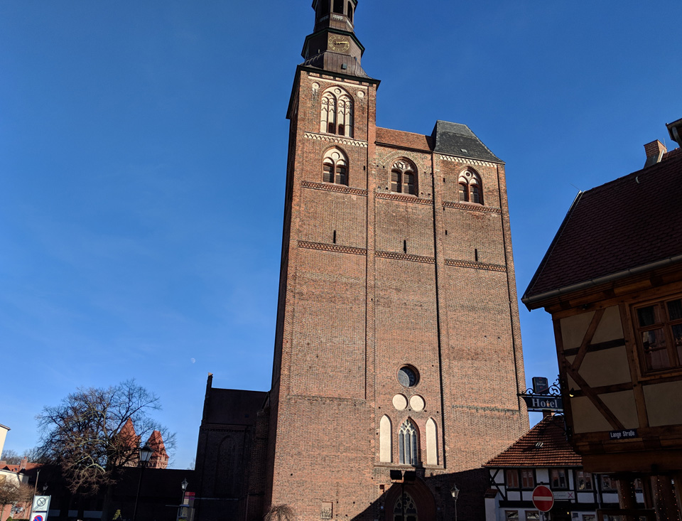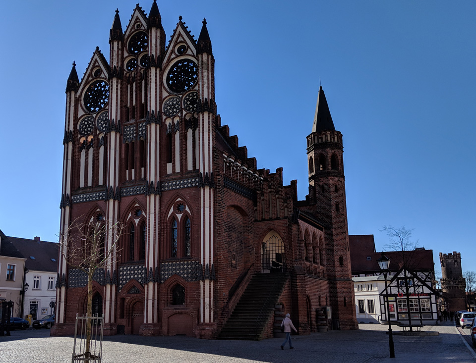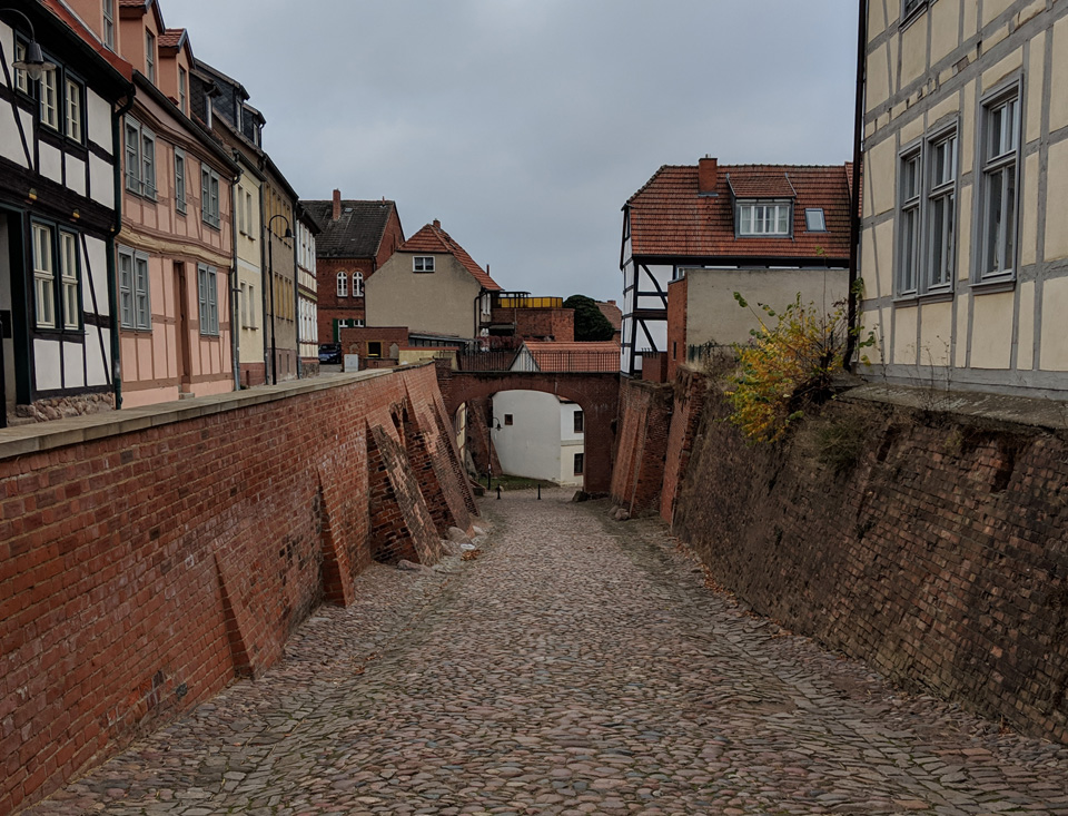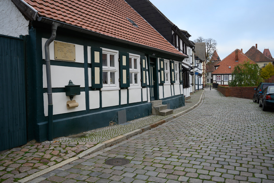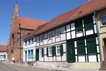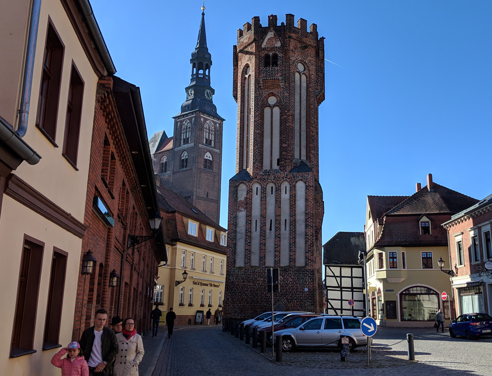 Durch das Neustädter Tor, vorbei an der ehemaligen St. Nikolai Kirche sind wir in die Lange Straße, die eigentliche Ladenstraße eingeschwenkt. Wir sind immer wieder begeistert von den schönen, historischen Gebäuden rechts und links dieser Straße. Vorbei am historischen Rathaus, was mal wieder eingerüstet ist, sind wir fast bis zum Eulenturm (Hünerdorfer Tor) gelaufen. Ca. 100 Meter davor haben wir die Konditorei Stehwien entdeckt. Hier ist der Werkverkauf ihrer Produkte, die in der Zwischenzeit fabrikmäßig produziert werden. Für uns sehr nachteilig, man konnte die meisten Produkte verkosten. Das führte wieder zielsicher zu einem exzessiven Einkauf. Mit einem gut gefüllten Einkaufsbeutel haben wir den Laden wieder verlassen. Unseren Spaziergang haben wir über die Schäferstraße, in Richtung alte Stadtmauer fortgesetzt. Man läuft in der abgehenden Langer Straße wieder vorbei an kleinen, liebevoll gepflegten Fachwerkhäusern. Man hat den Eindruck, hier ist vor mehr als 200 Jahren die Zeit stehen geblieben. Wir genießen den Anblick und bleiben vor so manchem Haus stehen und bewundern die Handwerkskunst, die diese kleinen Häuser hat entstehen lassen. Wir sind zurück in die Lange Straße zum Altmärker, gegenüber dem Rathaus. Hier haben wir uns mit Wurst versorgt. Wir essen die Produkte der Altmärker Fleischerei sehr gerne, sie sind sehr deftig gewürzt. Von hier aus ging es dann aber zielstrebig zurück zu unserem Womo.