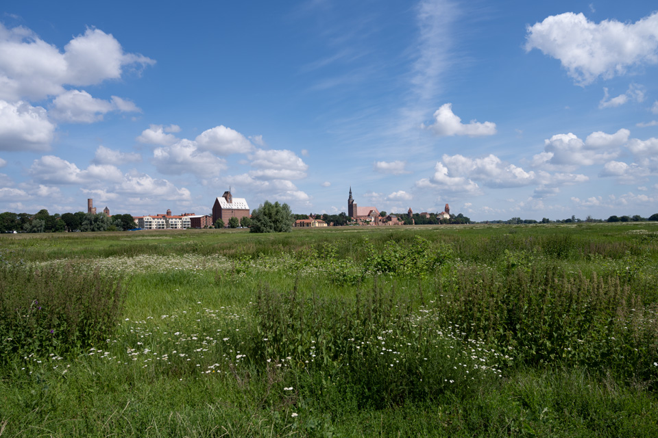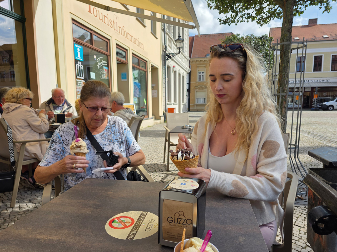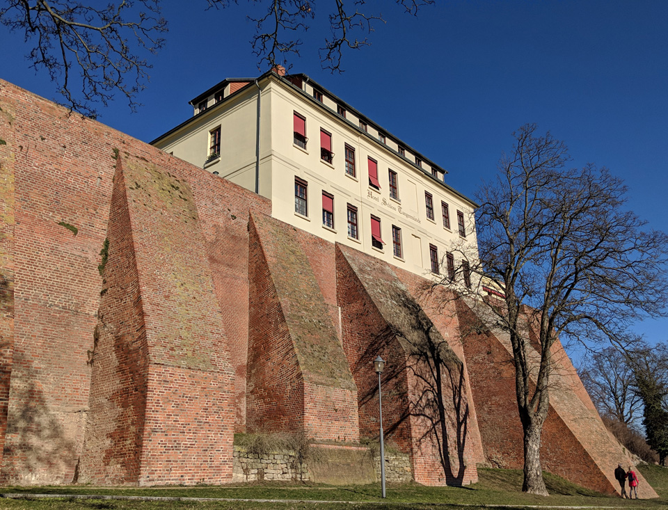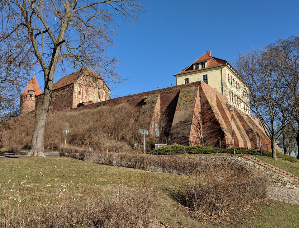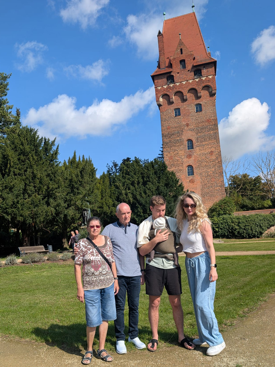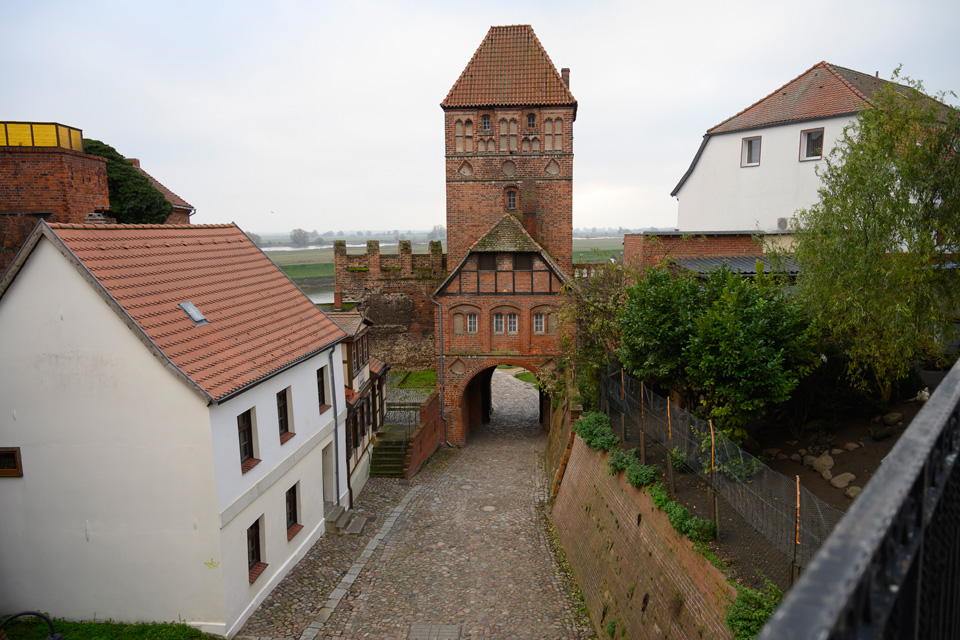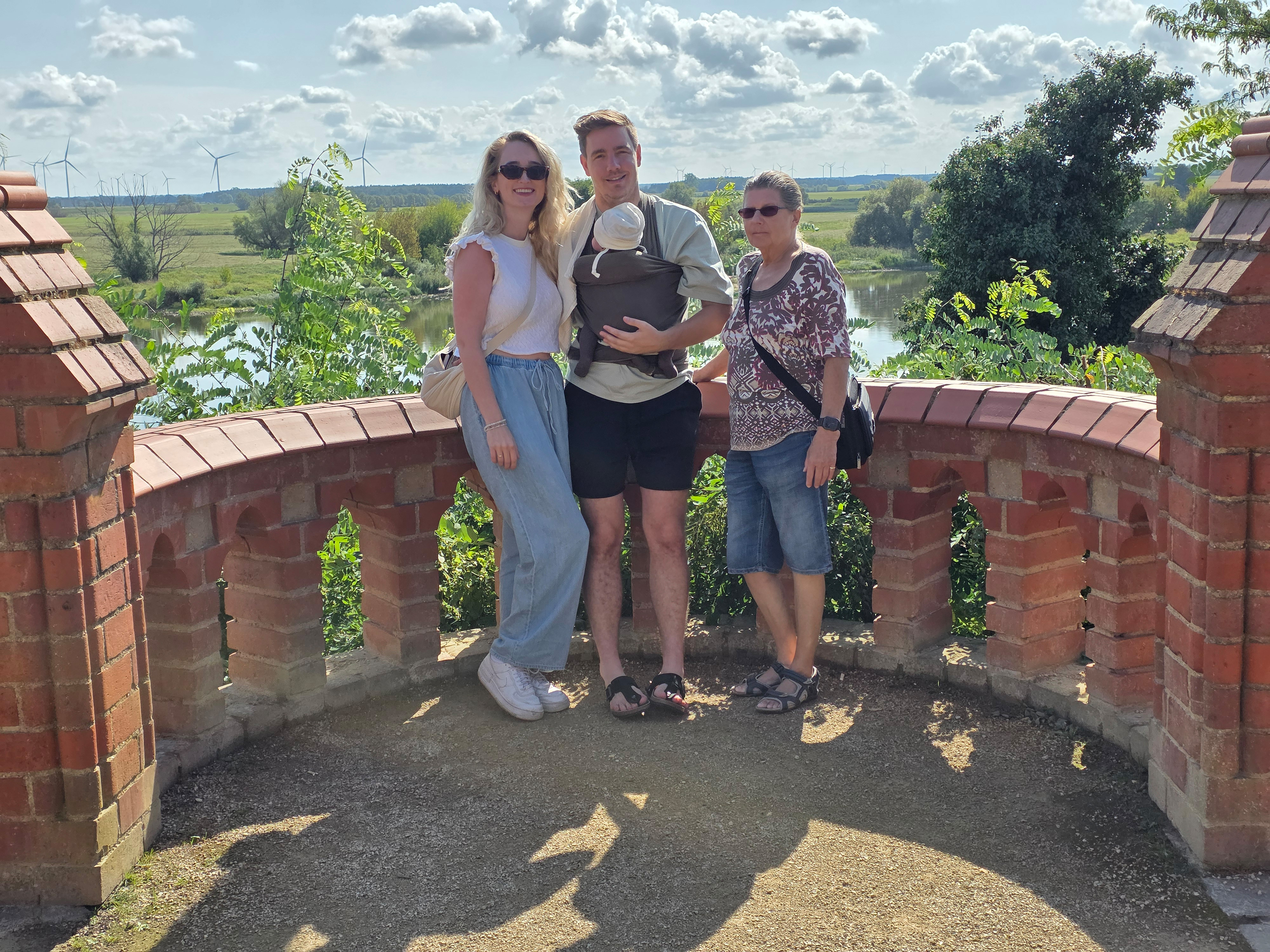Gegen 11:15 Uhr sind Vivien u. Mario mit Jonah eingetroffen. Da sie erst ab 15:00 Uhr in ihre Hütte können, waren wir erst bei uns im Womo. Jonah fasziniert uns immer mehr durch seine wachsende Aufmerksamkeit. Man hat zunehmend das Gefühl, dass er uns regelrecht fixiert und beobachtet. Mit Grimassen und Geräuschen lässt er sich sehr schnell zum Lachen bringen. Gegen 13:00 Uhr sind wir zu einem Spaziergang aufgebrochen. Wir sind die Hafenpromenade entlang gelaufen und haben die wuchtige Stadtmauer bewundert und das Schloss von der Wasserseite. Unterwegs gab es eine kleine Pause, Jonah hatte wieder Hunger und wollte an die Milchbar. Wir sind über den Zollenstieg wieder hoch zu der Hünerdorfer Straße gelaufen, vorbei an der Salzkirche. Sie war zwar offen, sie beherbergt aber auch nur noch eine Ausstellung. In der Hünerdorfer Straße stehen besonders viele Häuser mit mehr als 200 Jahren auf dem Puckel, die fast alle liebevoll restauriert wurden und sich wieder in altem Glanz zeigen. Man entdeckt an vielen Details an diesen Häusern den hohen Grad an handwerklichem Können, was schon damals an den Tag gelegt wurde. Der Eulenturm ist schon verwaist. Die Störche haben Deutschland bereits verlassen. Am Rathausplatz haben wir ein Eis gegessen. Beim Schlemmen konnten wir die faszinierende Rathausfassade bewundern. Sie ist eine Schaufassade, komplett aus Backsteinen gemauert, die mit ihren 24 Metern Höhe den Rest des Gebäudes komplett überragt. Nach dem Eisessen ging es schräg rüber zum Altmärker. Hier konnten sich Vivien und Mario Wurst für die anstehenden Frühstücke aussuchen. Vorbei und durch das Neustädter Tor ging es wieder zurück zum Womo. Susanne konnte nun den Checkin für die beiden machen und sie konnten danach ihr Iglu in Beschlag nehmen.