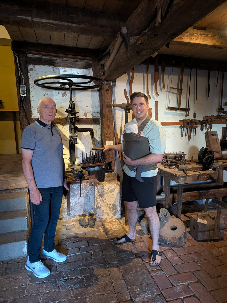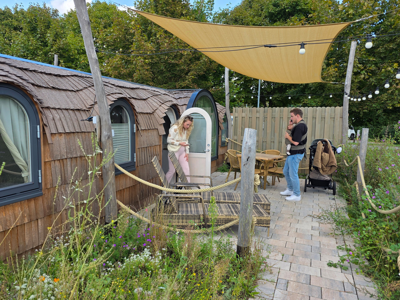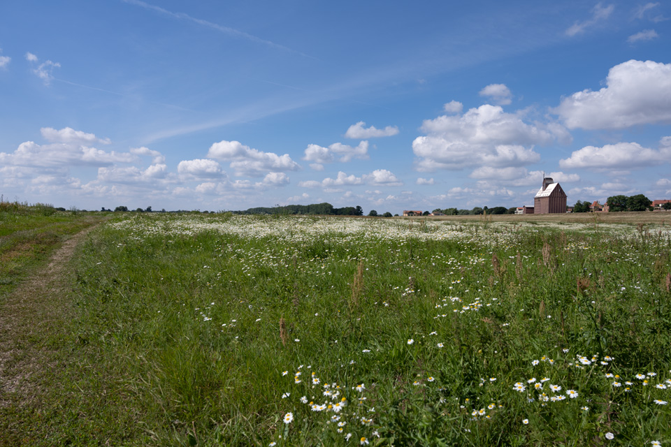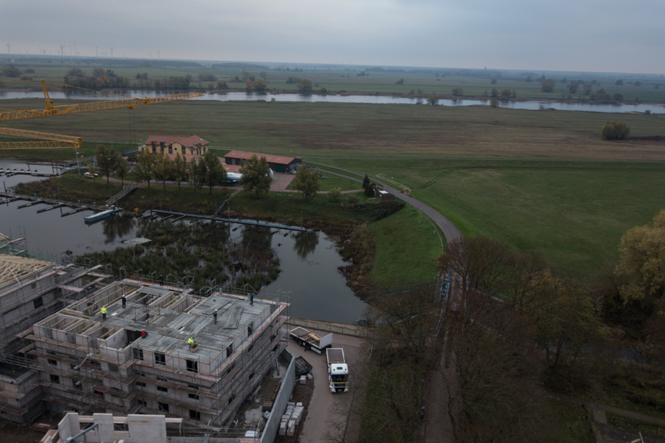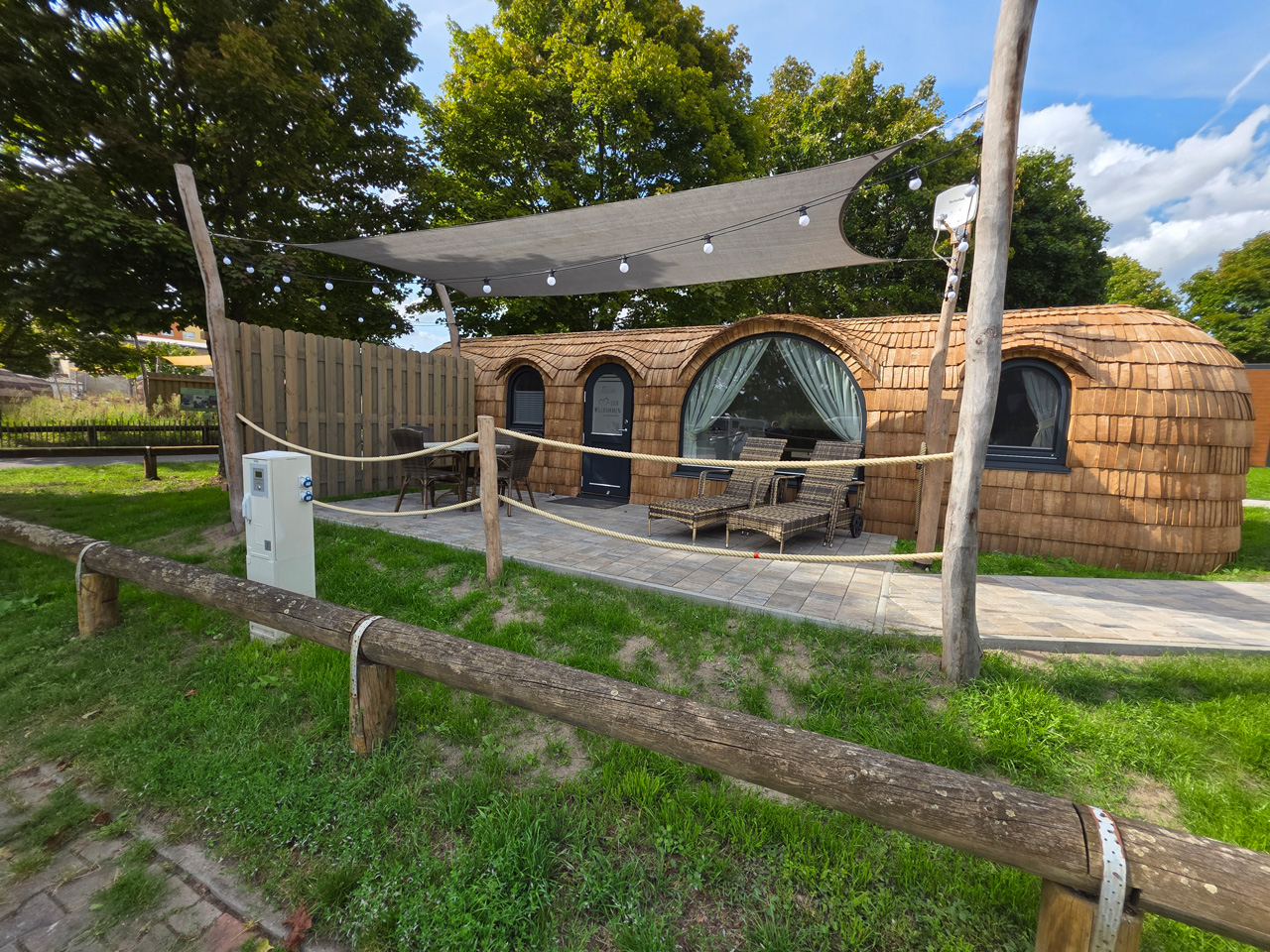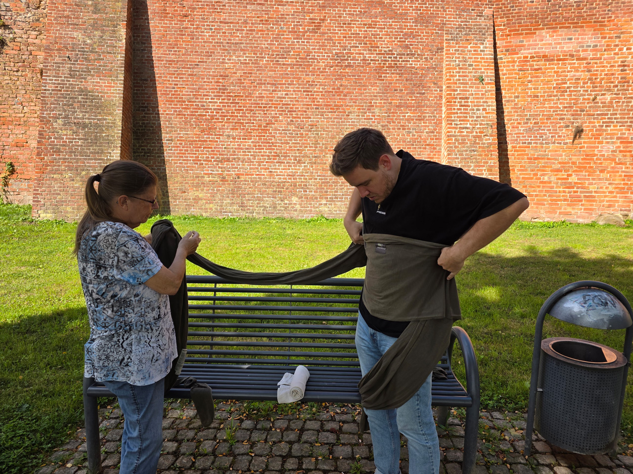 Gegen 11:15 Uhr sind Vivien u. Mario mit Jonah eingetroffen. Da sie erst ab 15:00 Uhr in ihre Hütte können, waren wir erst bei uns im Womo. Jonah fasziniert uns immer mehr durch seine wachsende Aufmerksamkeit. Man hat zunehmend das Gefühl, dass er uns regelrecht fixiert und beobachtet. Mit Grimassen und Geräuschen lässt er sich sehr schnell zum Lachen bringen. Gegen 13:00 Uhr sind wir zu einem Spaziergang aufgebrochen. Wir sind die Hafenpromenade entlang gelaufen und haben die wuchtige Stadtmauer bewundert und das Schloss von der Wasserseite. Unterwegs gab es eine kleine Pause, Jonah hatte wieder Hunger und wollte an die Milchbar. Wir sind über den Zollenstieg wieder hoch zu der Hünerdorfer Straße gelaufen, vorbei an der Salzkirche. Sie war zwar offen, sie beherbergt aber auch nur noch eine Ausstellung. In der Hünerdorfer Straße stehen besonders viele Häuser mit mehr als 200 Jahren auf dem Puckel, die fast alle liebevoll restauriert wurden und sich wieder in altem Glanz zeigen. Man entdeckt an vielen Details an diesen Häusern den hohen Grad an handwerklichem Können, was schon damals an den Tag gelegt wurde. Der Eulenturm ist schon verwaist. Die Störche haben Deutschland bereits verlassen. Am Rathausplatz haben wir ein Eis gegessen. Beim Schlemmen konnten wir die faszinierende Rathausfassade bewundern. Sie ist eine Schaufassade, komplett aus Backsteinen gemauert, die mit ihren 24 Metern Höhe den Rest des Gebäudes komplett überragt. Nach dem Eisessen ging es schräg rüber zum Altmärker. Hier konnten sich Vivien und Mario Wurst für die anstehenden Frühstücke aussuchen. Vorbei und durch das Neustädter Tor ging es wieder zurück zum Womo. Susanne konnte nun den Checkin für die beiden machen und sie konnten danach ihr Iglu in Beschlag nehmen.