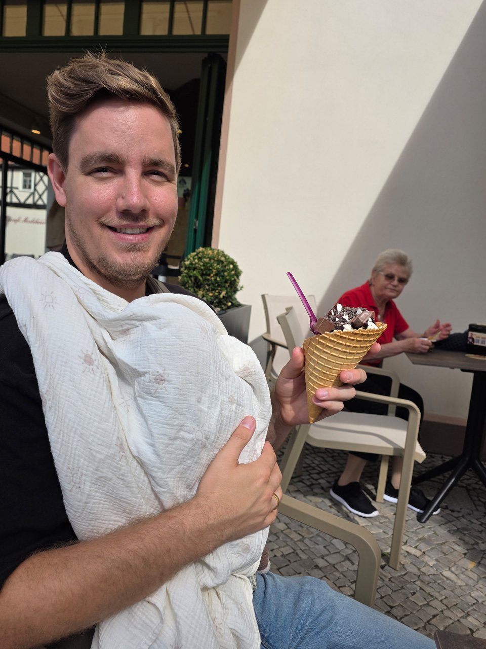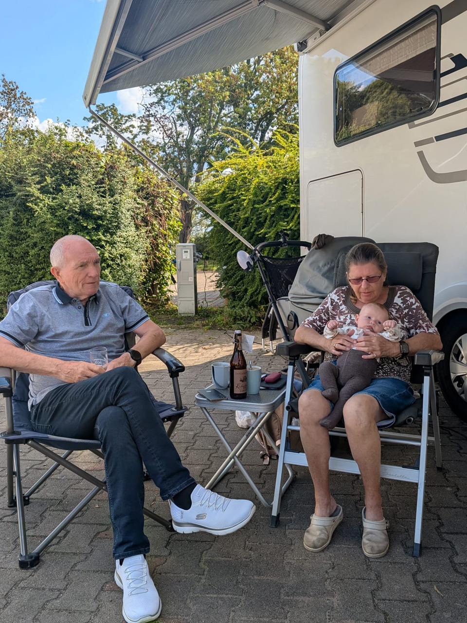 Am späten Nachmittag sind wir wieder aufgebrochen, um zum Griechen am Rathausplatz zu gehen. Das Essen dort war spitze. Danach waren wir noch etwas mit den dreien bei uns im Womo. Mit Jonah kann man jetzt schon richtig Spaß haben. Das war wieder ein sehr schöner Tag mit den dreien.