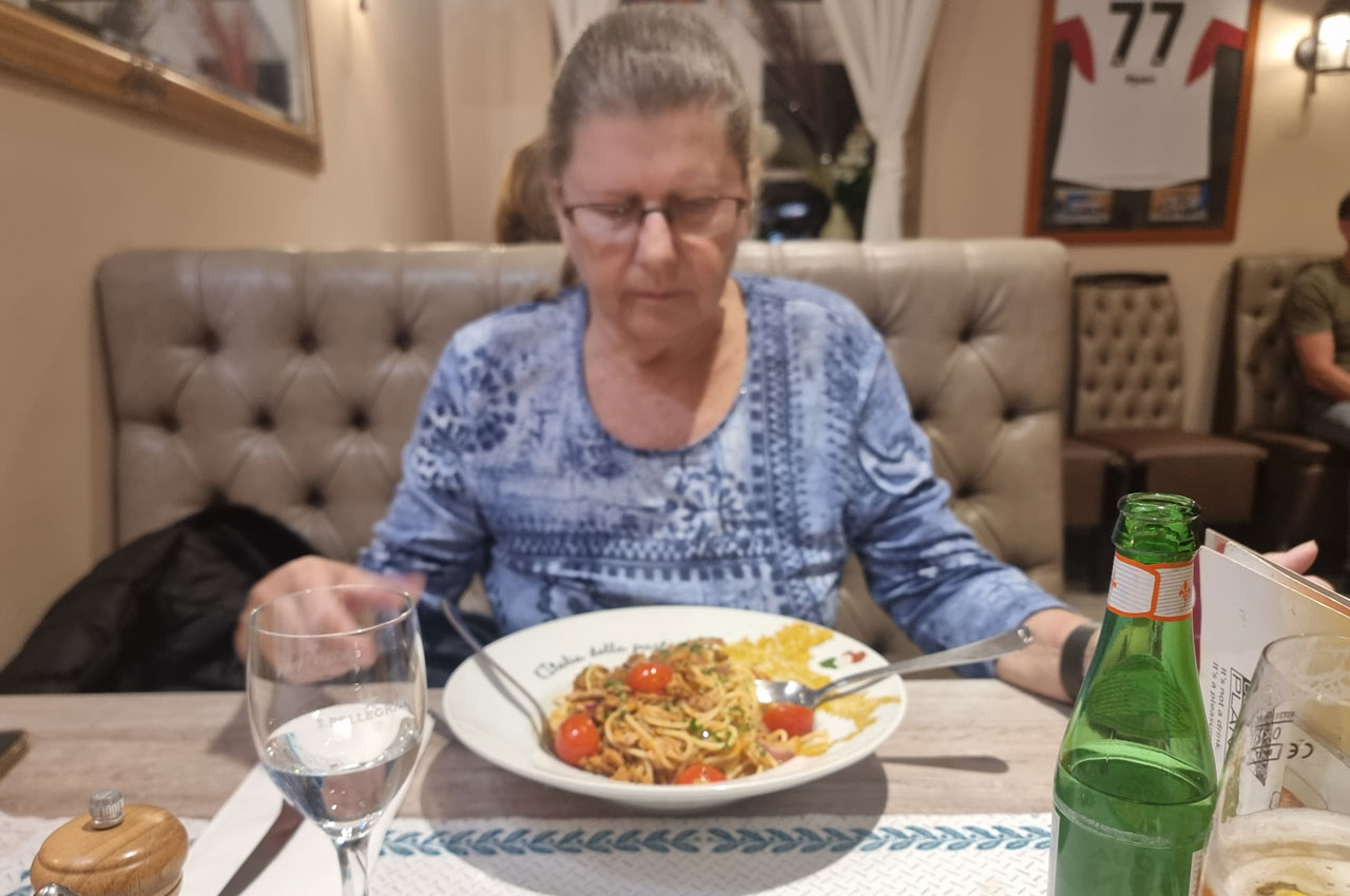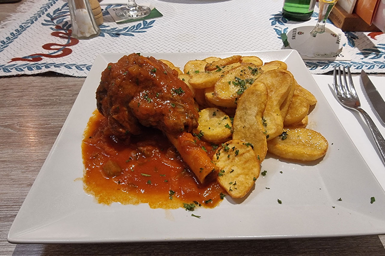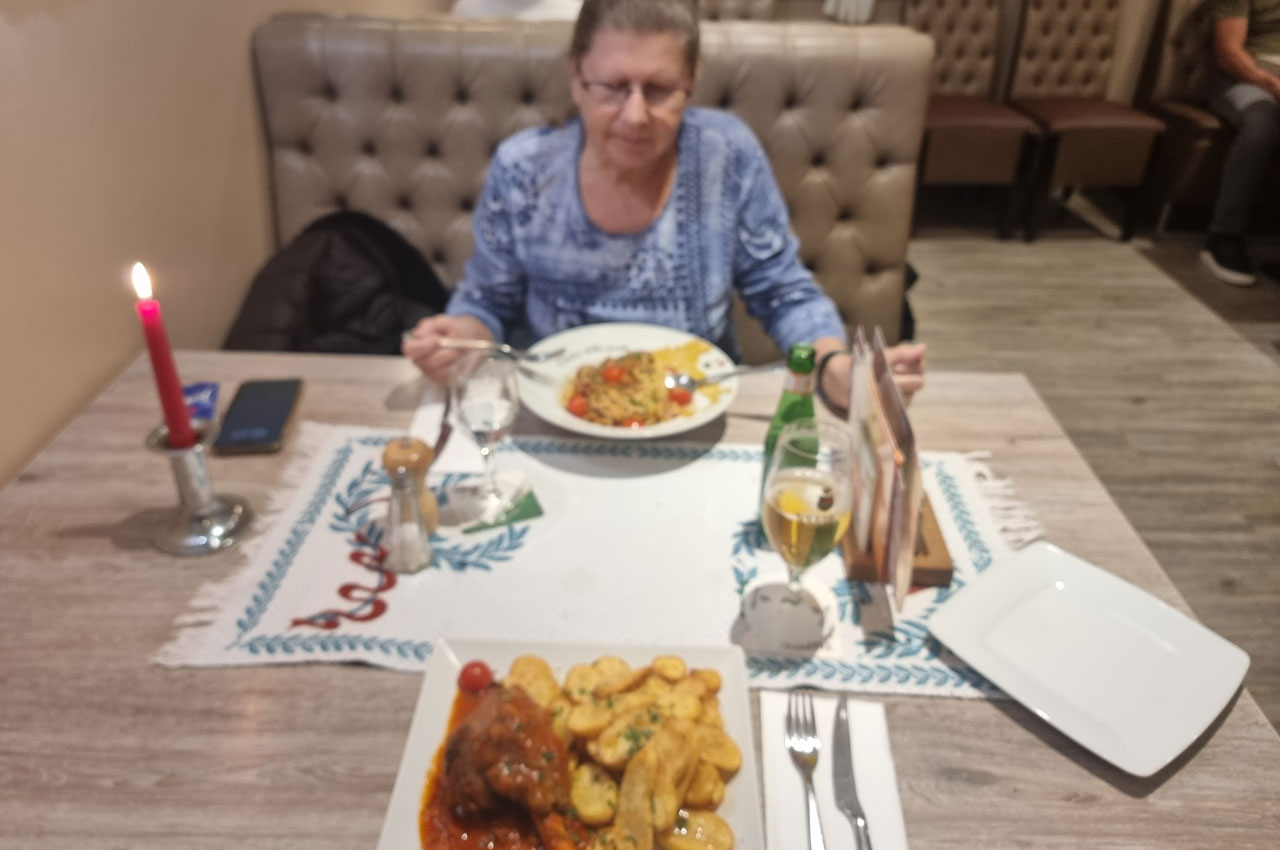 Kurz vor unserer Abendbrotzeit habe ich Susanne vorgeschlagen heute zu dem guten Italiener zu gehen. Sie war sofort damit einverstanden. Wir haben auch ohne Reservierung einen Tisch bekommen. Ich habe das Sonderangebot Lammhaxe gewählt und das war richtig lecker. Susanne war mit ihrem Gericht auch sehr zufrieden.