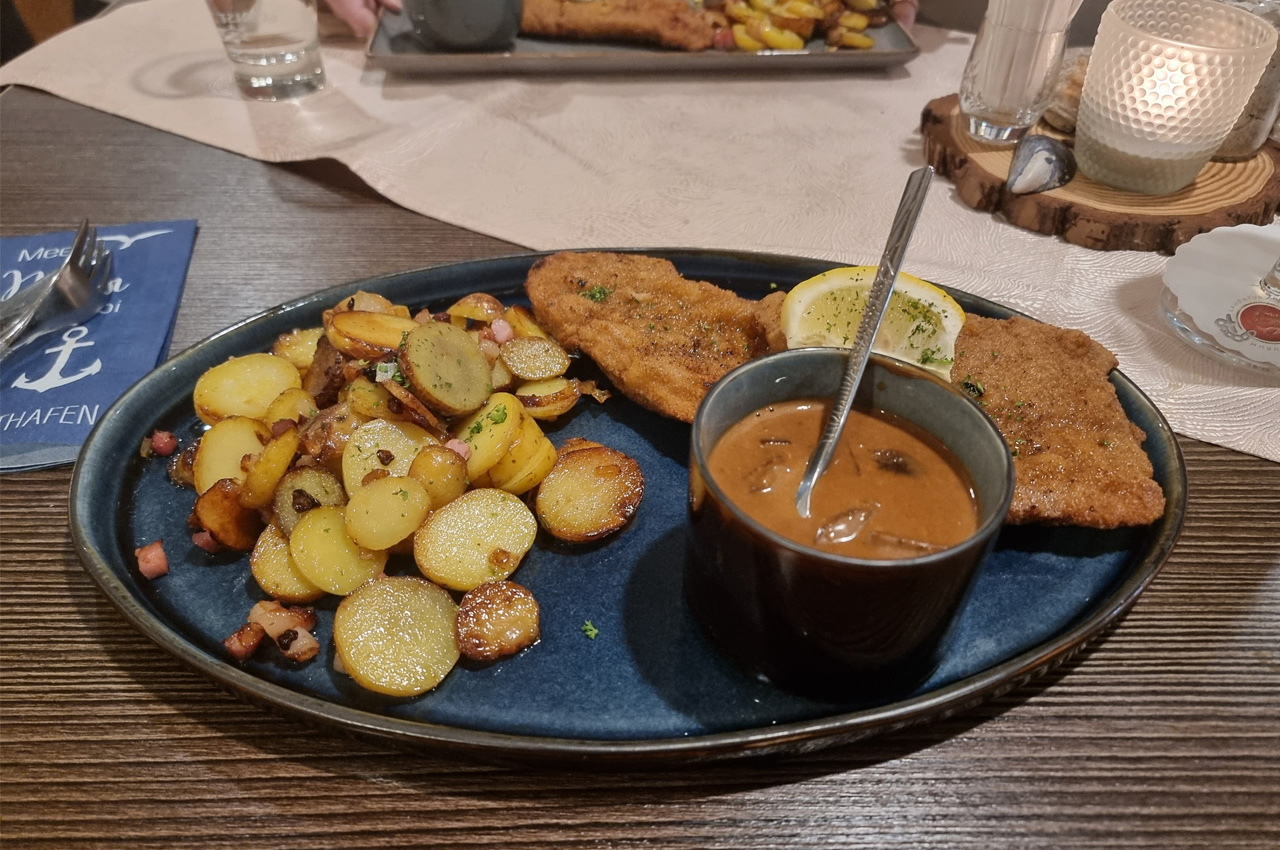 Kurz nach 18:00 Uhr saßen wir in der Gaststätte zum Leuchtturm im Yachthafen von Uelzen. Seit unserem ersten Besuch hier vor fast 20 Jahren, hat hier viele Male die Bewirtschaftung gewechselt. Von super bis grottenschlecht war alles dabei. Mal sehen wie es dieses mal wird. Abgesehen davon, dass wir eine gute Stunde auf das Essen warten mussten, war es aber richtig lecker. Die Preisgestaltung passt auch in die aktuelle Zeit.