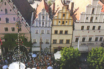 Der Marktplatz erstreckt sich zwischen dem Oberen und dem Unteren Tor. Dazwischen liegt das Alte Rathaus. Der Obere Markt mit seinen Giebelhäusern aus der Zeit nach 1540 erstreckt sich zwischen dem Oberen Tor und dem Alten Rathaus. Zwischen dem Alten Rathaus und dem Unteren Tor befindet sich der Untere Markt, der als Standort der vier großen Jahrmärkte, die schon seit 1396 überliefert sind, und des Mittwoch und Samstag stattfindenden Wochenmarkts dient. Viele Bürgerhäuser tragen Stilmerkmale der Renaissance.