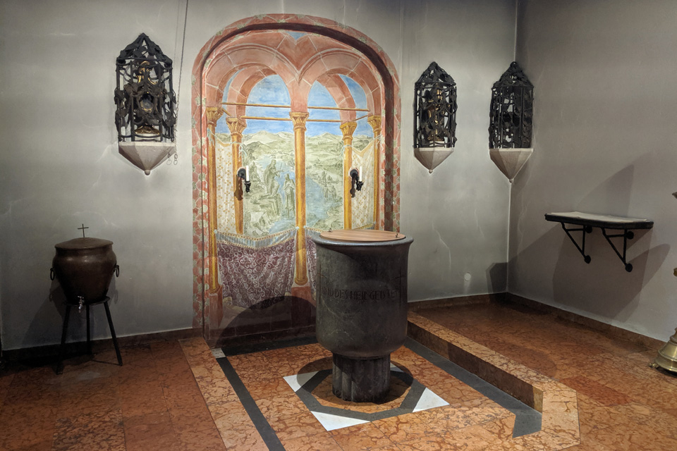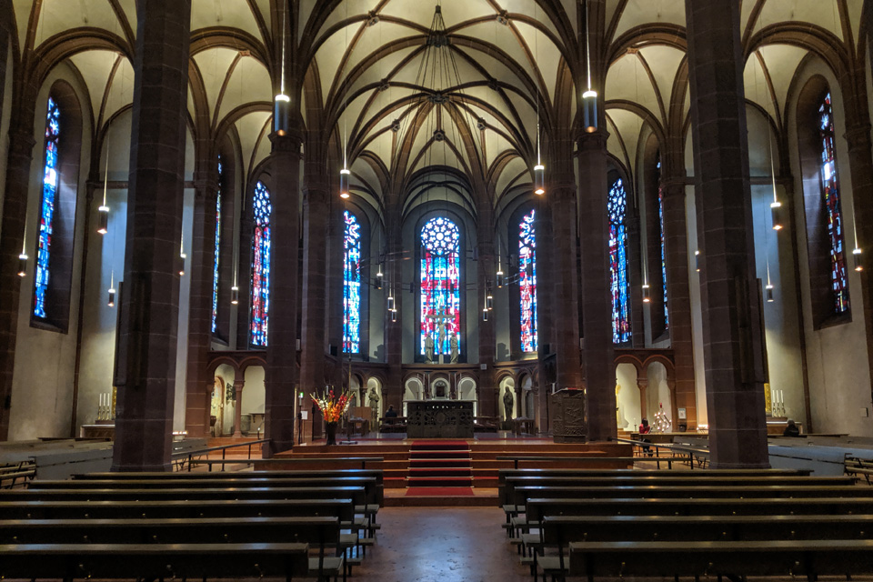 09.09.2019: Eine sehr aufgeräumte Kirche. Modernes Outfit in einem historischen Gebäude.