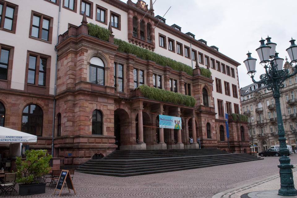 Das 1608 bis 1610 errichtete Alte Rathaus von Wiesbaden ist das älteste Gebäude der Stadt. Es steht am zentralen Platz der Wiesbadener Altstadt in der Marktstraße, die den Schlossplatz tangiert. Es wurde ursprünglich im Renaissance-Stil von Antonius Schöffer nach den Plänen von Valerius Bausendorff mit massivem Erdgeschoss und sehr reichem farbigem Fachwerkobergeschoss mit Erkern und hohen geschwungenen Giebeln gebaut. Die 2-zweiläufige Treppe hatte kein Geländer. Für den Bau arbeiteten die Bewohner der Stadt sieben Wochen ohne Bezahlung. Rechts neben dem Eingang stand der Pranger mit Ketten und Halseisen. An Markttagen mussten die Delinquenten hier stehen und waren dem Spott ihrer Mitbürger ausgeliefert.